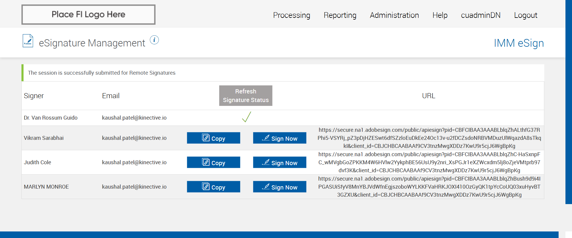 Actual(Passed): Verified 'Copy' and 'Sign Now' button displayed in eSignature Management page for the party - 2[ScreenShot]