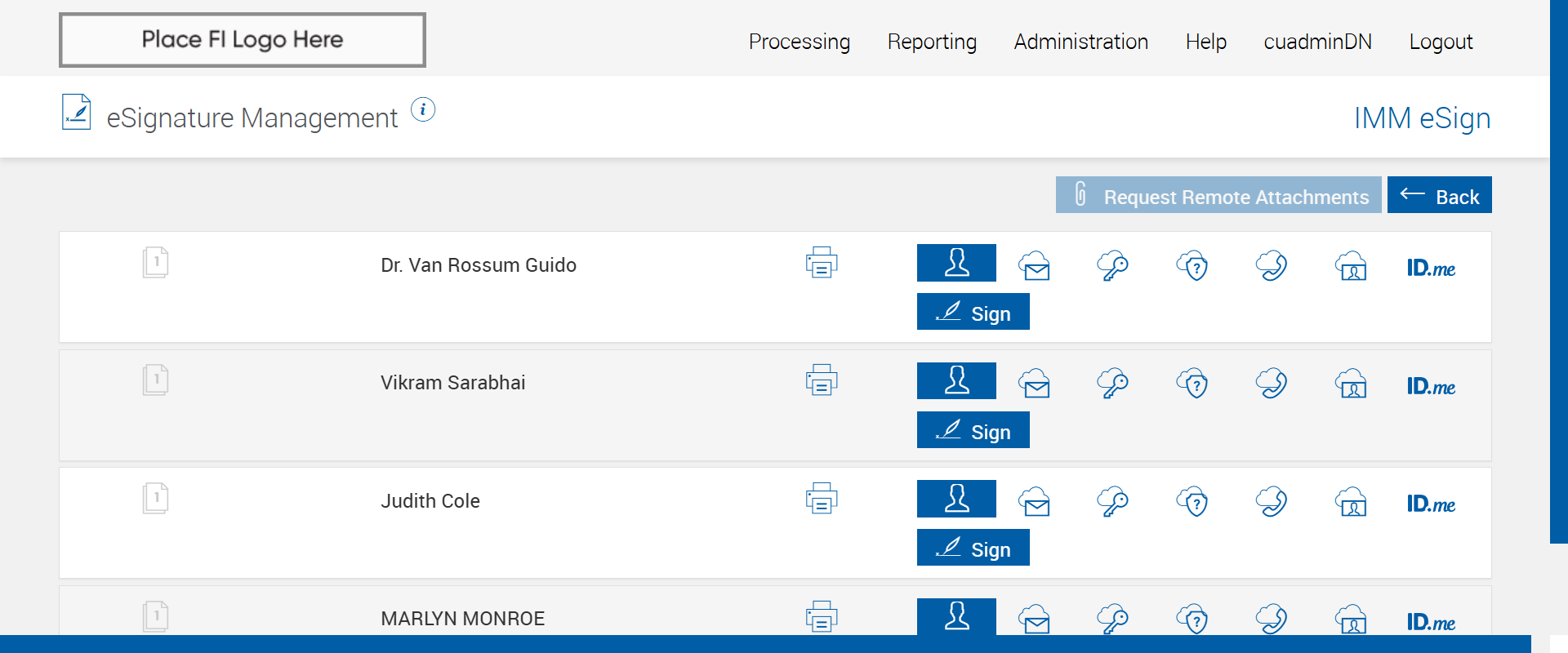 Successfully navigated to the 'eSignature Management' page [ScreenShot]