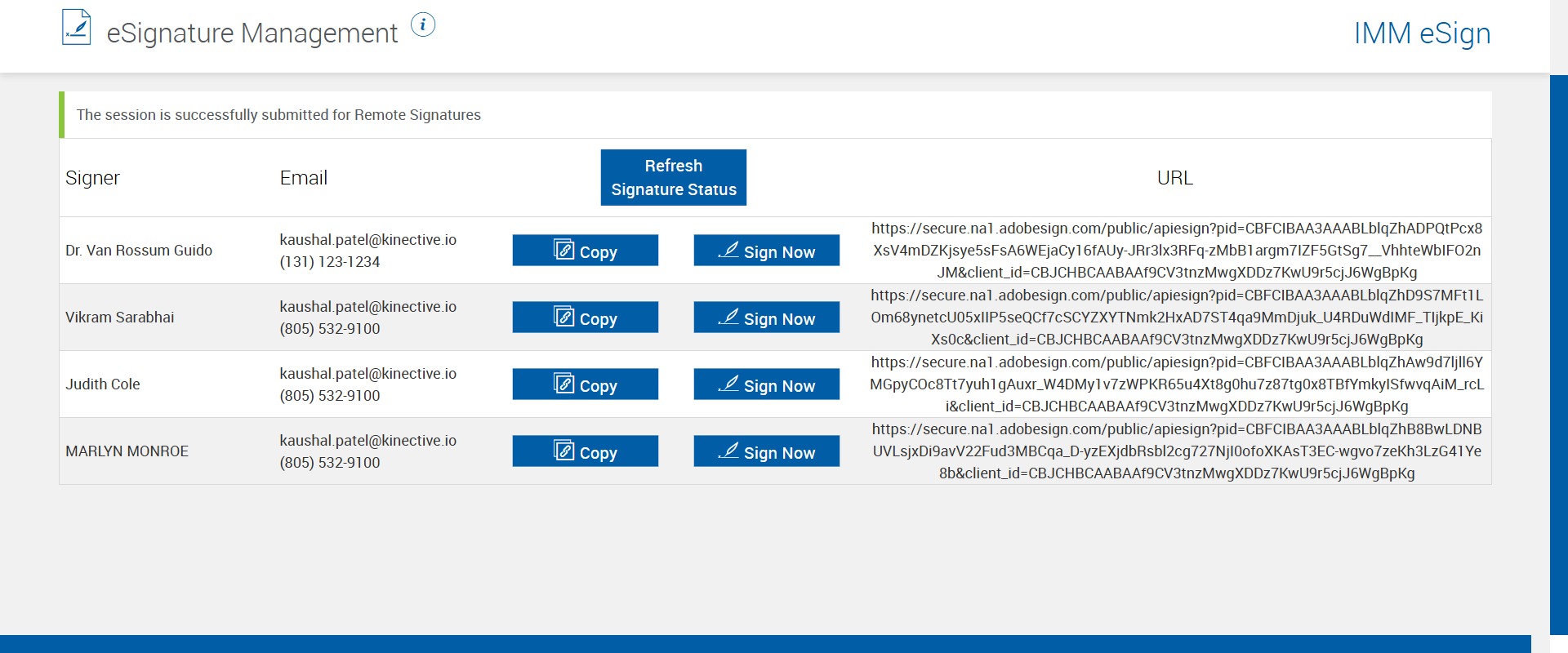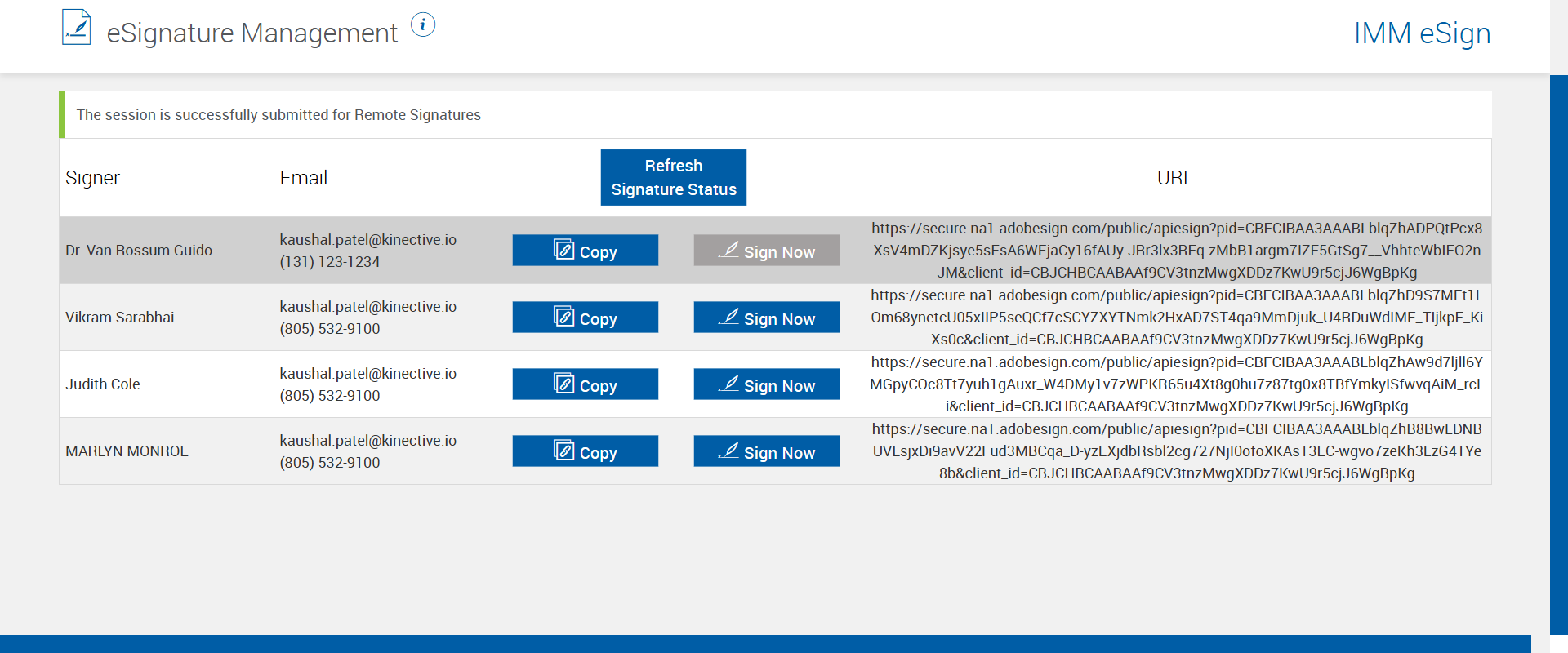 Actual(Passed): Verified 'Copy' and 'Sign Now' button displayed in eSignature Management page for the party - 2[ScreenShot]