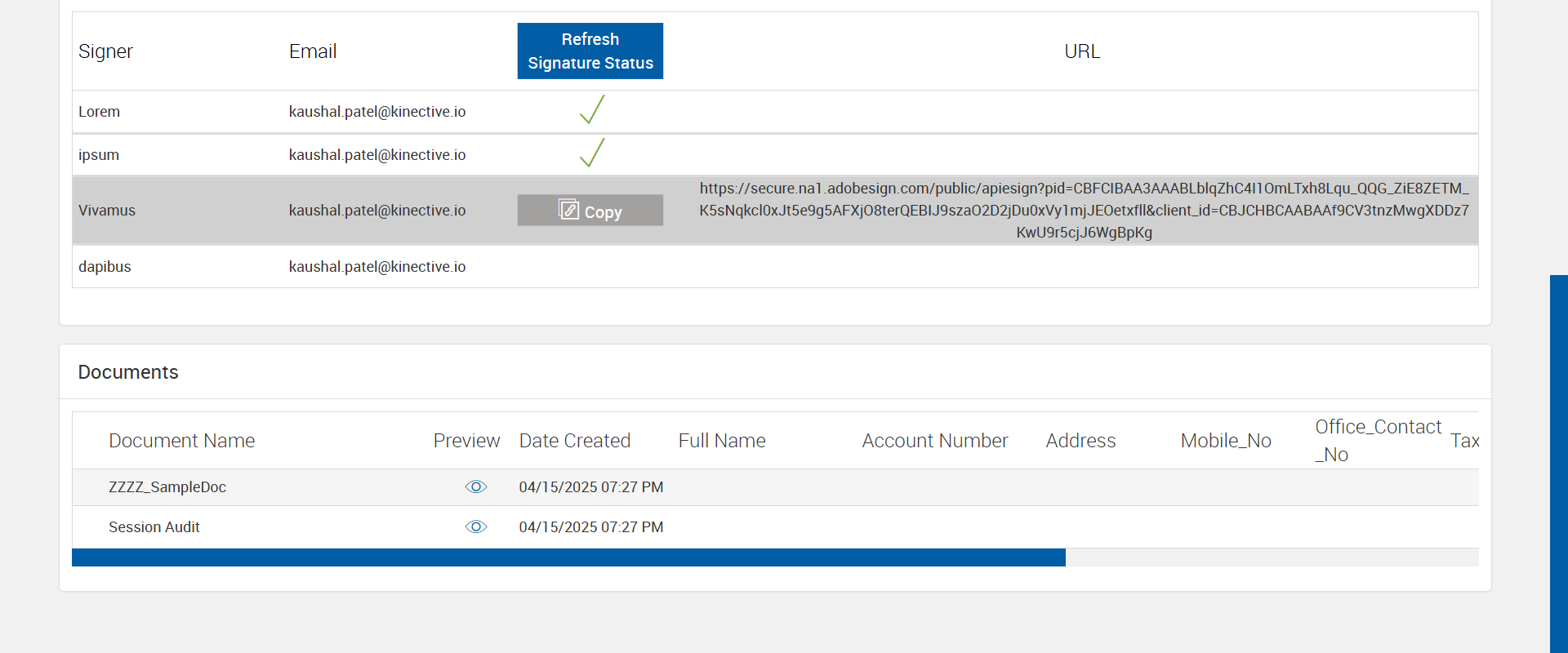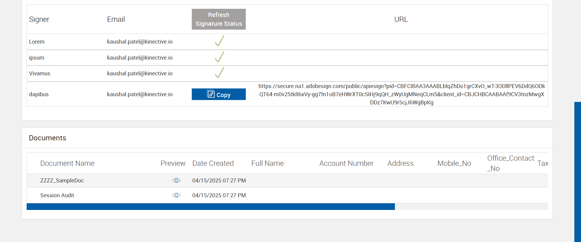 | {Tenant_URL=https://esignnonprod.immesign.com/qa/tenantmanager/, EmailID=kaushal.patel@kinective.io;, WorkflowSummary=, Login_User_ID=fiadmin, Address=, FiStatus=, FiAdmin_LastName=, Add_Dictionary=, GRP_PermissionRadio=, Effect_Summary=, Name=, GRP_PermissionChkBox=, NewUser_ID=, LocalDomain=, PartiesToView=, NewName=, User_ID=, Wkf_Permission=, Reset_Password=, NewDescription=, AZDomain=, Workflow=, City=, Delete_Dictionary=, AttachmentTypeOption=, PlusFi=false, NewEmailID=eSignQATest@hotmail.com;, State=, Login_Password=nimdaif, eSignClient=, ClientID=, Domain=, UserType=, FI_Type=Unified, NewGroup=, Tenant_User=, FiAdmin_FirstName=, Group=, Dictionary=, FI_Name=, CompletionOder=Complete in order; Complete in any order;, Description=Set Kiosk setting dropdown field in Tenant Manager. Login into eSign Fi with creating RTS and XML session and verify Kiosk functionality., AdditionalDomainName=, SearchUser=, Filepath=src/main/resources/testdata/files/documentRTS/BasicRTSDocs/005BA1.pdf;src/main/resources/testdata/files/documentRTS/BasicRTSDocs/513BA.pdf;src/main/resources/testdata/files/documentRTS/BasicRTSDocs/ZZZZ_SampleDoc.pdf, TestID=VerifyKioskFunctionalityWithRTSAndXMLSessionInEsign, KioskDropDownValues=Copy;Sign Now;Copy and Sign Now;, FiAdmin_UserID=, Dictionary_Code=, IndexSource=, Access_Password=, UserURL2=, Inbox_Permission=, Confirm_Reset_Password=, AdditionalLocalDomainName=, Notes=, Inbox=, GlobalAdmin=, Path=src/main/resources/testdata/files/documentRTS/BasicRTSDocs/BasicRTSDocTemplates.zip;, Copy_User_ID=, Tenant_Password=, Enter_eSignClient=, ZipCode=, FI_ID=ekiosk6, XMLSessionURL=https://esignplusqa.immesign.com/TEAASP/HostDispatch.aspx?hostid=XP&hsfiid=ekiosk6&xmlData=D:\Automation_DataFiles\PCO1O2-AlphaFiB.xml, Confirm_Password=, CasesUser=, Tab=, UserURL=, Copy_Tab=} |