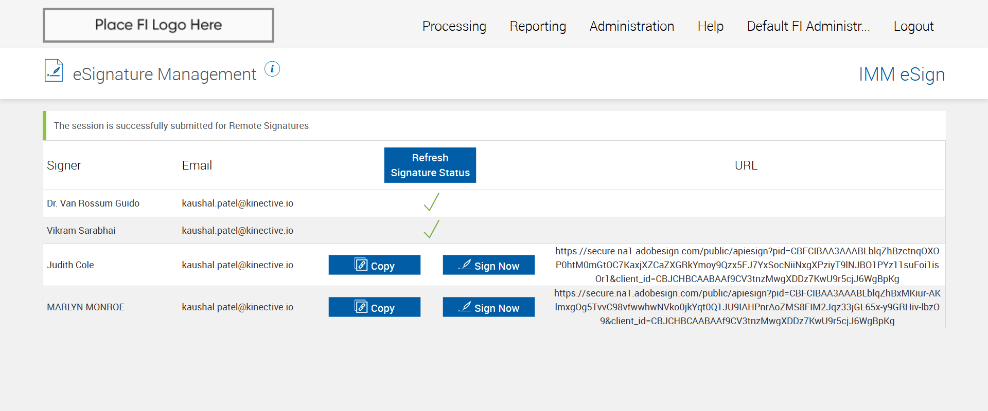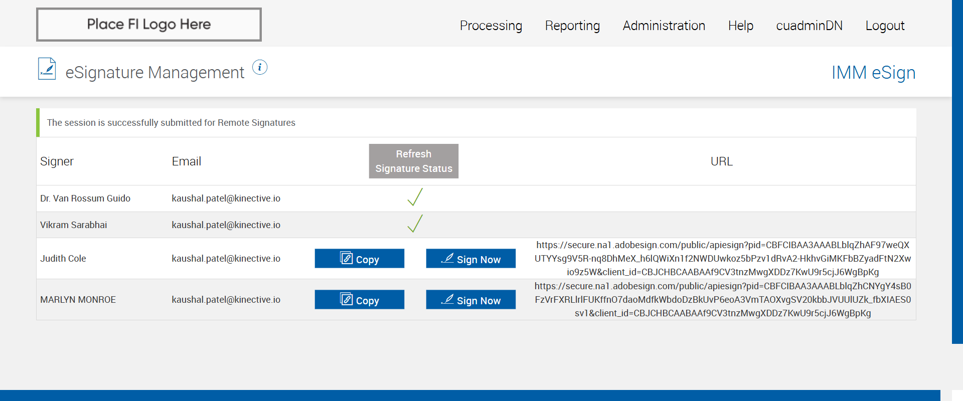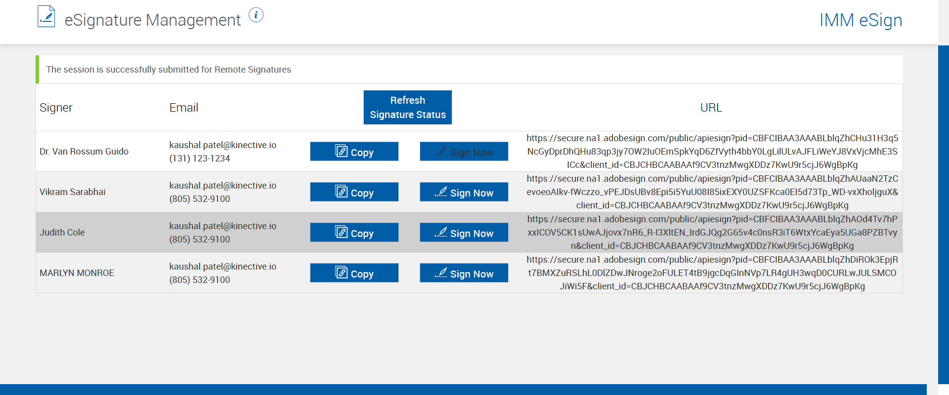 Successfully navigated to the 'eSignature Management' page [ScreenShot]