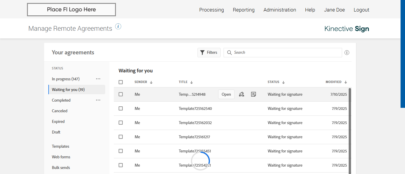 | 07:07:16 pm | Expected: Manage Remote Agreement page displayed successfully and Waiting for you status is displayed Actual(Passed): Successfully displyed status Waiting for you [ScreenShot] |