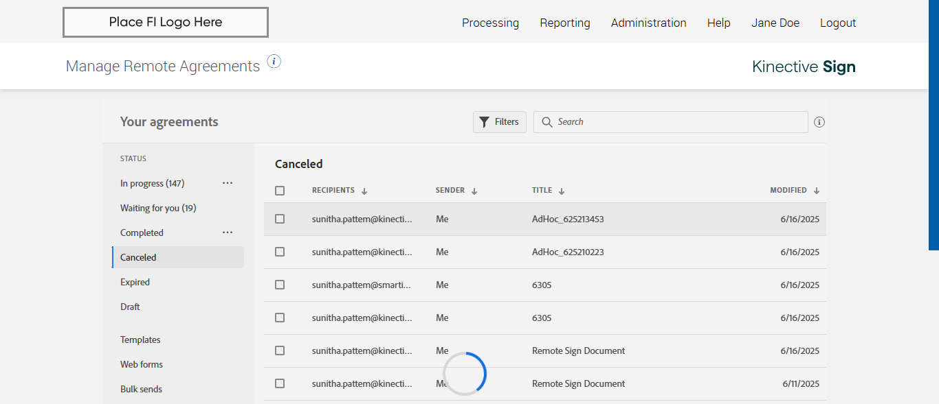 | 07:07:40 pm | Manage Remote Agreement page displayed successfully and Canceled status is displayed [ScreenShot] | |