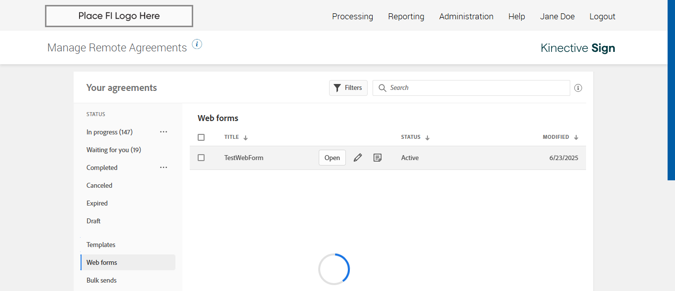 | 07:08:21 pm | Expected: Manage Remote Agreement page displayed successfully and Web forms status is displayed Actual(Passed): Successfully displyed status Web forms [ScreenShot] |