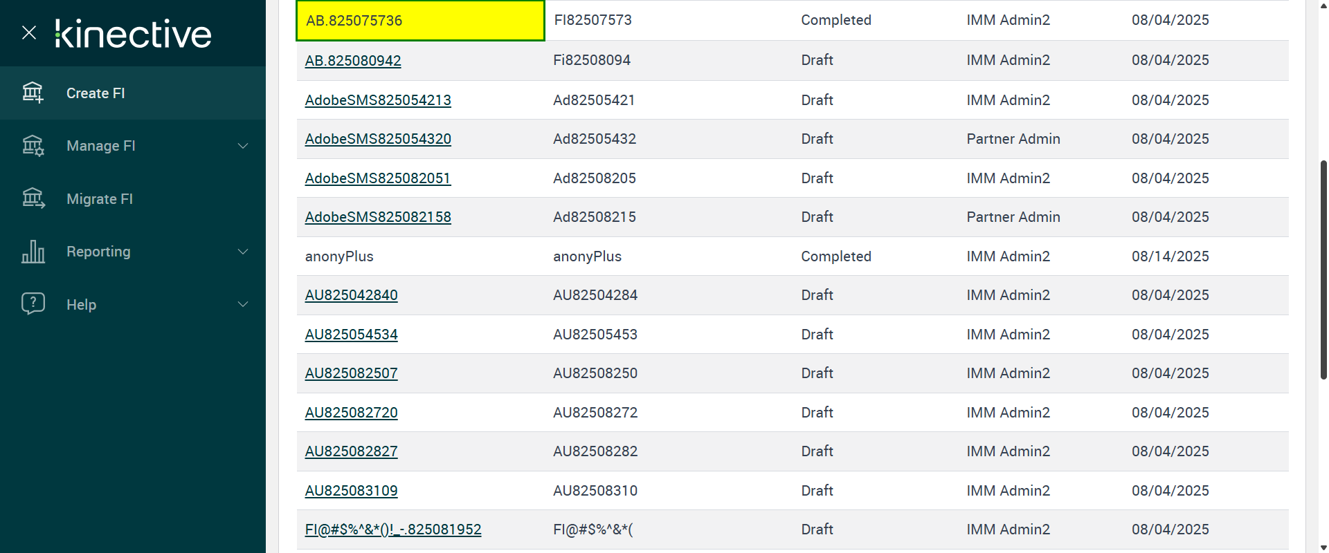Successfully navigated to 'Create an FI' page [ScreenShot]