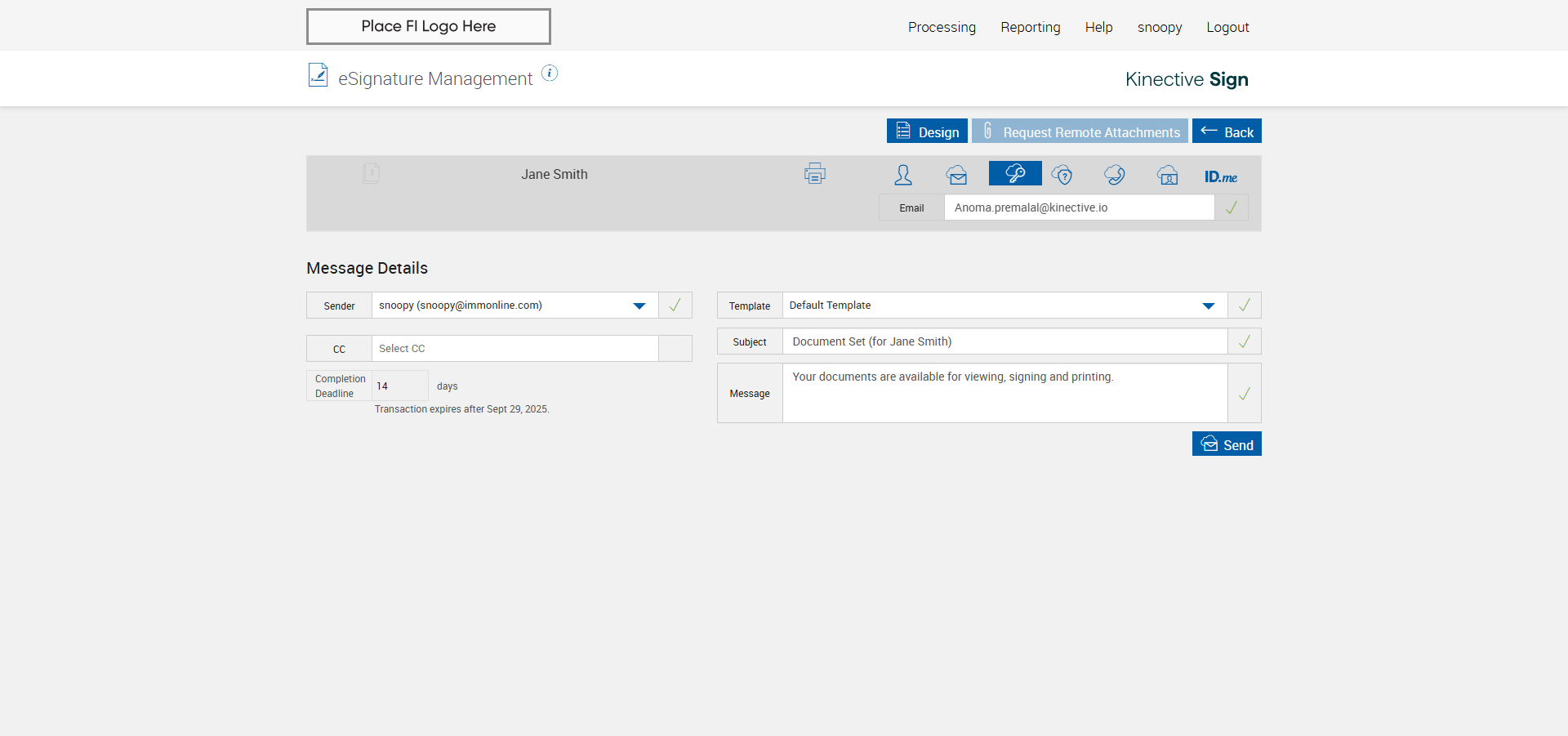 Successfully navigated to the 'eSignature Management' page [ScreenShot]