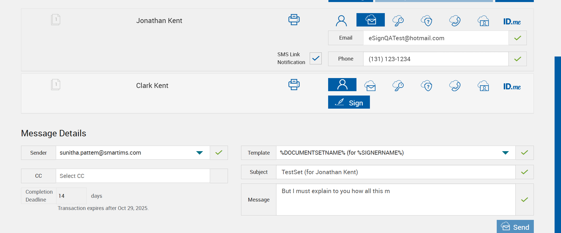 | 03:47:14 PM | Successfully verified by default SMS Link Delivery checkbox is checked for Email signing [ScreenShot] | |