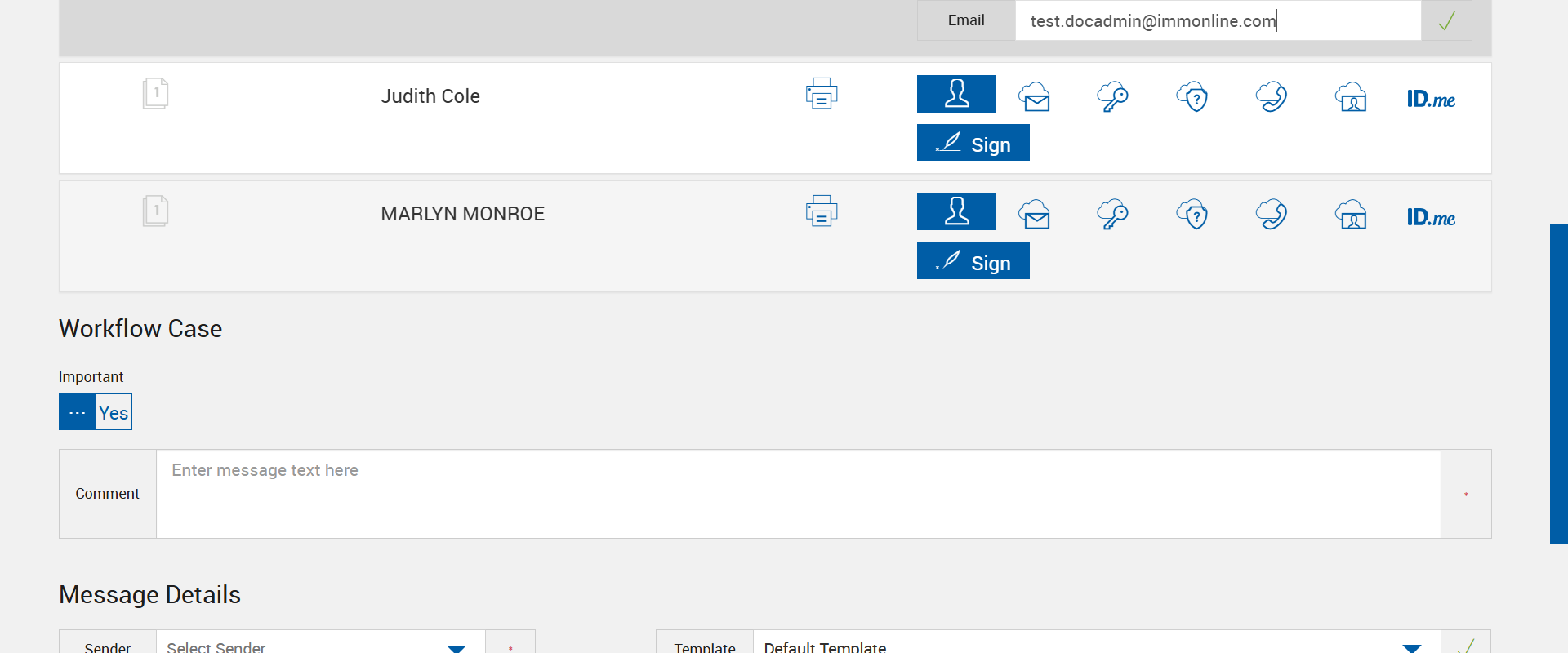 Expected: Verify 'Copy' and 'Sign Now' buttons display in eSignature Management page for the party - 4