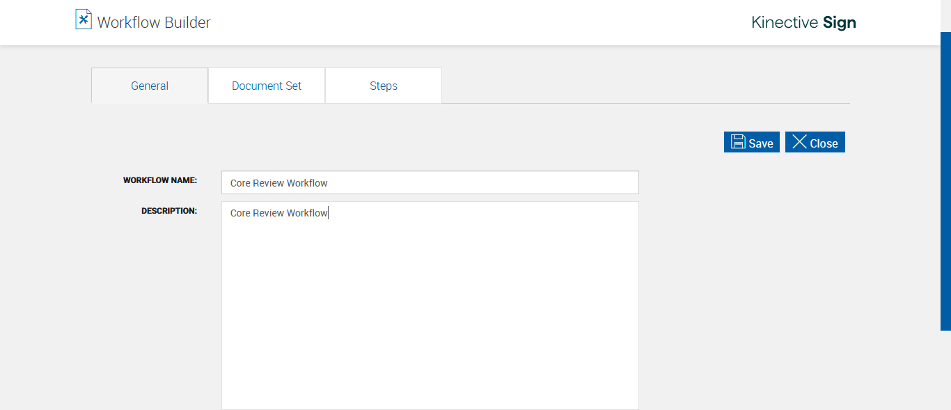 Entered workflow name : Core Review Workflow [ScreenShot]