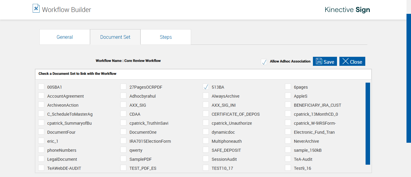 ({SendTaskEmail=, Description=Create new workflow With Core, workflowtodelete=, ConditionValue=Signed-Completely Signed, StepType=Action|AdHoc Download|Action, SessionUrl=, ConditionStep=, WorkflowBuilderActions=, Step Name=, CoreUpdateProcess=After download, TestID=createNewWorkflowWithCore, IsExpireRule=, ExpireNextStep=, Version=, FYI=Start-TRUE;FALSE|Archive-FALSE;FALSE|Review-FALSE|Sign In branch-FALSE|Signed-FALSE|Download-FALSE;FALSE;FALSE;FALSE|Archive Success-FALSE, WorkflowDescription=Core Review Workflow, IsAlert=Sign In branch, StepDescription=Completed Signing|Adhoc Download|After download, ExpireResponse=, RuleNextRecipient=Signed-Current Inbox, Password=, Condition=Signed-True, UncheckAllowSigning=, AlertFYIMessage=Sign In branch-TBA alert session expire within 10 days. Please Complete Signing, ConditionResponse=, AlertFYIRecipient=Sign In branch-Originator, Workflow=Core Review Workflow, FYIMessage=Start-FYI to shared inbox;FYI to regular user|Archive-null;null|Review-null|Sign In branch-null|Signed-null|Download-null;null;null;null|Archive Success-null, StepName=Signed|Adhoc Download|After download, Recipient=Start-Originator|Archive-null;null|Signed-Originator|Download-null;null;Return to Sender;johnteller|Archive Success-null|Adhoc Download-Originator|After Download-null, ExpireFYI=, AlertTime=Sign In branch-2 Day, ExpireFYIMessage=, RuleNextStep=Signed-Archive, ExpireFYIRecipient=, ExpireRecipient=, UploadPath=, Username=, StepResponse=Start-Signed|Archive-Archived;Failed|Signed-Archive|Download-Signed;Expired;Aborted;Download Failure|Archive Success-Done|Adhoc Download-Download Success|After Download-Done, FYIRecipient=Start-Shared Inbox;John Teller (immlab\johnteller)|Archive-null;null|Review-null|Sign In branch-null|Signed-null|Download-null;null;null;null|Archive Success-null, AlertFYI=Sign In branch-TRUE, IsExpire=, DocumentSet=513BA|BENEFICIARY_IRA_CUST, Rule=Signed-Archive, ConditionType=Signed-Signature, ConditionRole=, ExpireTime=, NextStep=Start-Signed|Archive-Done;Cancel|Signed-Archive|Download-Done;Done;Archive;Archive|Archive Success-Done|Adhoc Download-After download|After Download-Done})