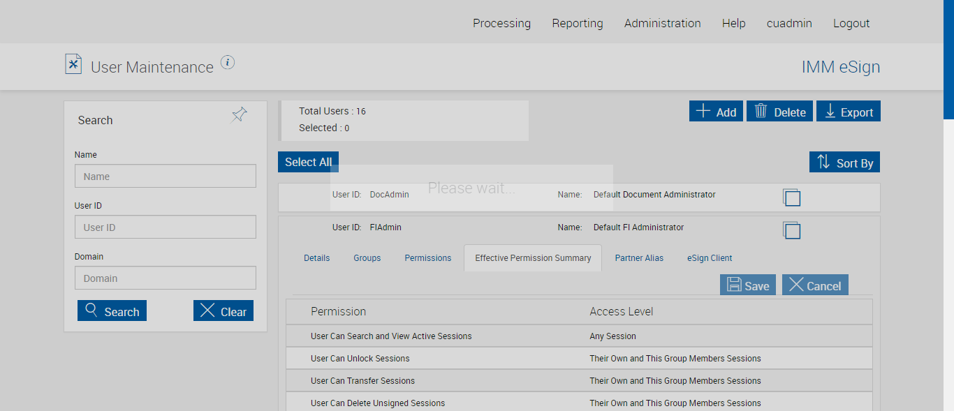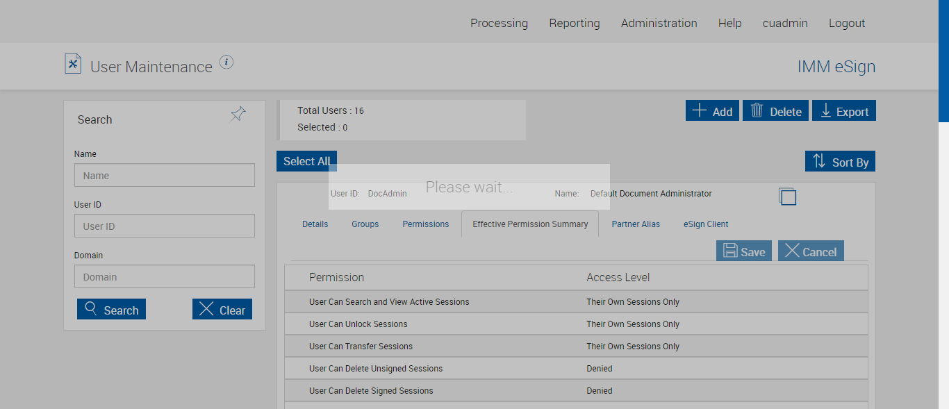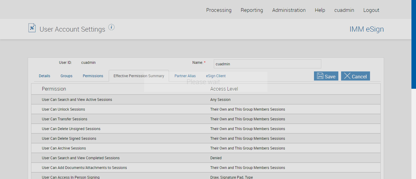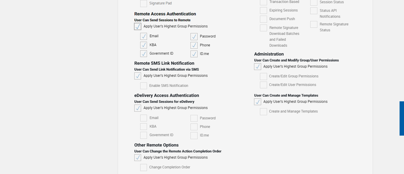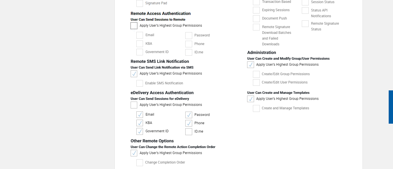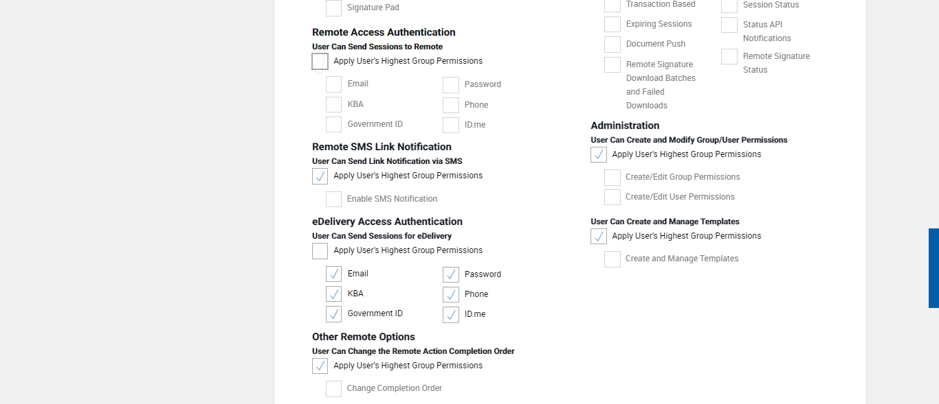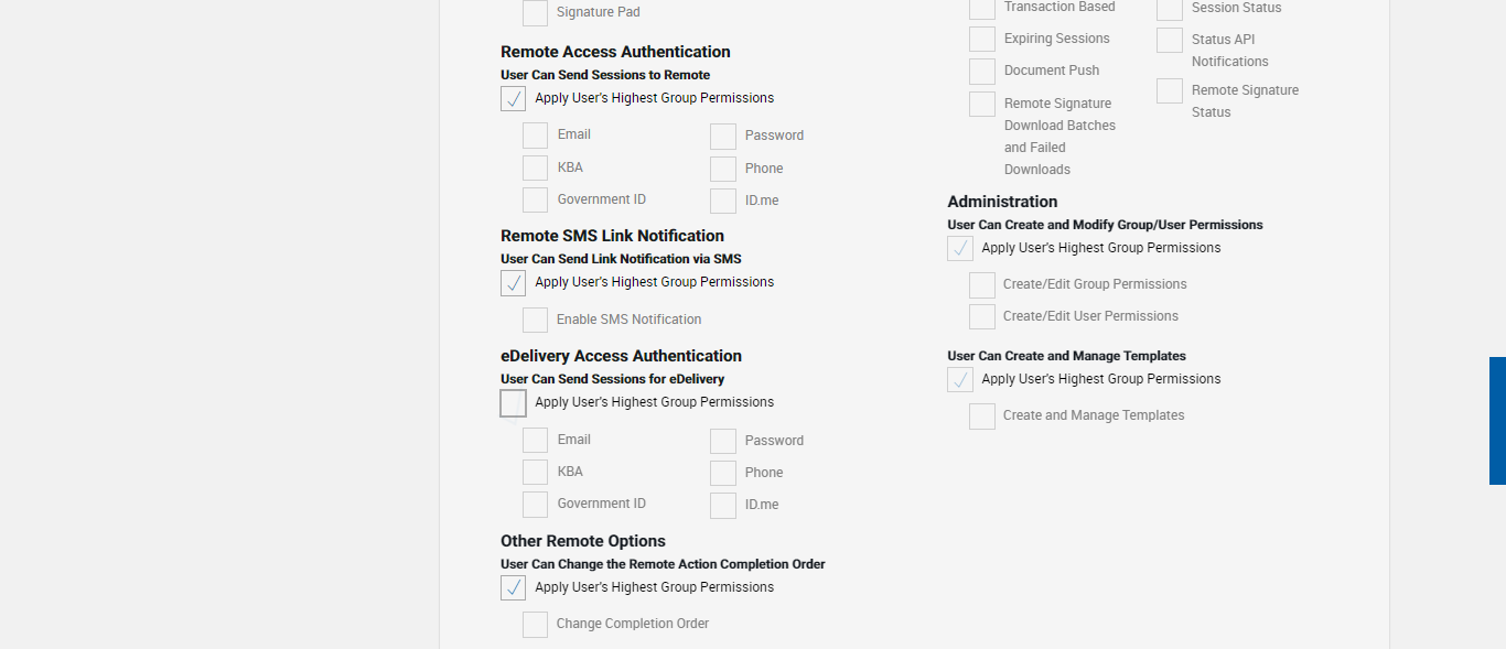 User Accessl Level Lable is: User Can Send Sessions for eDelivery is equals to User Can Send Sessions for eDelivery |