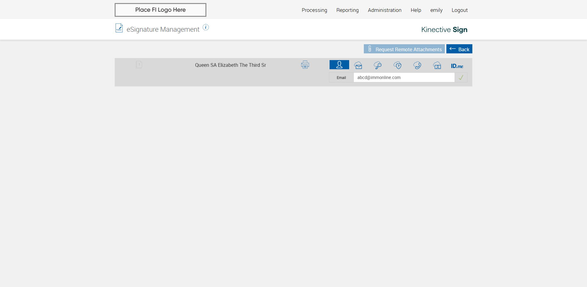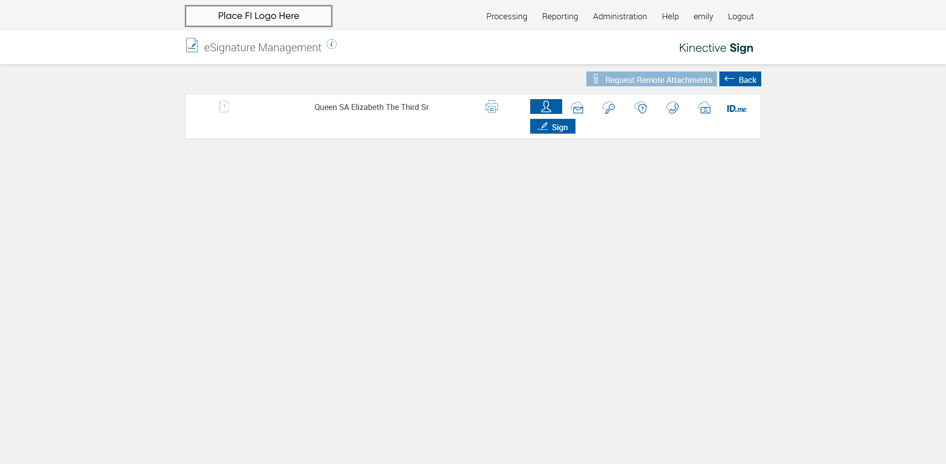 Successfully navigated to the 'eSignature Management' page [ScreenShot]