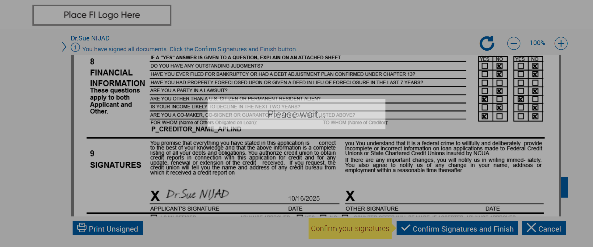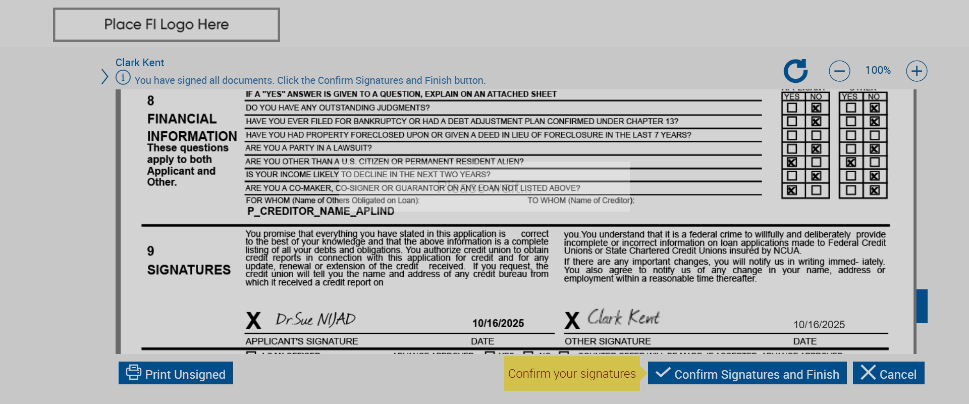 | 12:37:11 PM | Clicked 'Confirm signature and finish' button! | |