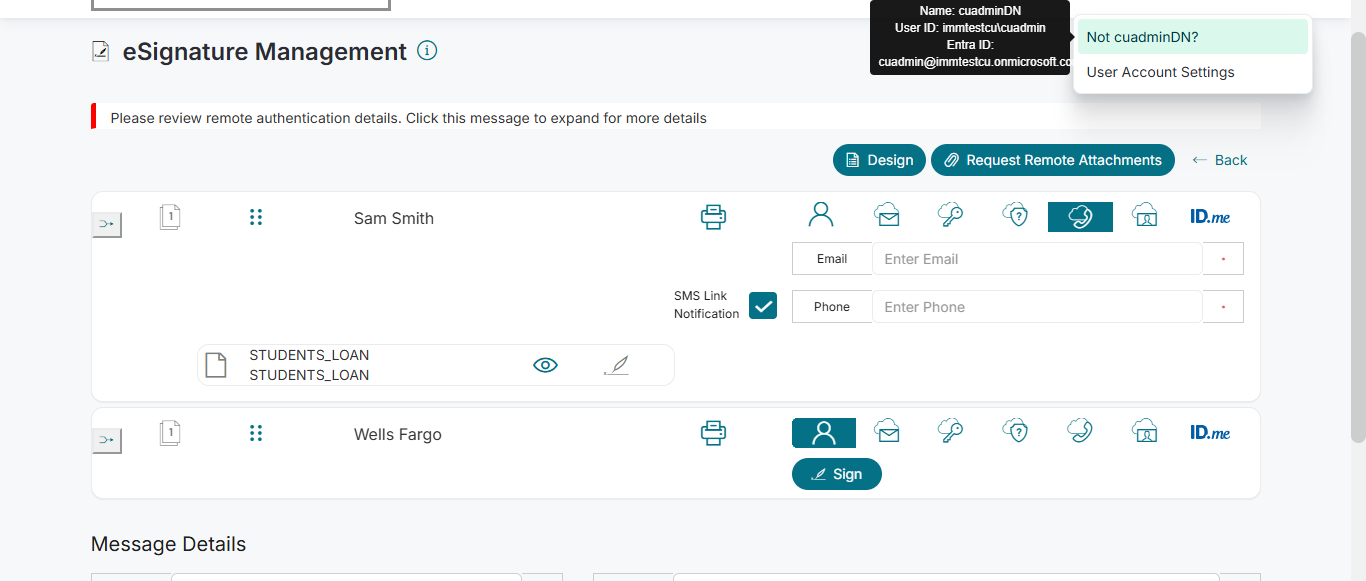 | {Tenant_URL=https://esignnonprod.immesign.com/qa/tenantmanager/, EditFullName=, Email=, Platform=, Sender_Emails=, ShortName=, PartyName=, CoreUpdateProcess=, PartiesToView=, AttachmentName=, ReceivedFromNames=, TextField=, ArchiveOptions=, plusfi=false, DocumentName=LOAN_APPLICATION, Dropdownvalues=, toggleStatus=, Workflow=, AttachmentTypeOption=, NumOfAttachments=, Folderpath=, NameDescription=, Export_Values=, UserType=, Tenant_User=immadmin2@immesignqa.onmicrosoft.com, Group=, Description=verify Adobe SMS In Person Signing Method - Unified FI, Message=Your documents are available for viewing, signing and printing., FileName=, EditShortName=, Phone_Number=+91 9700164911, Step Name=, Filepath=src/main/resources/testdata/files/documentRTS/OptionalSignature.zip,src/main/resources/testdata/files/documentRTS/OptionalSignature.zip,src/main/resources/testdata/files/documentRTS/STUDENTS_LOAN.pdf,src/main/resources/testdata/files/documentRTS/LOAN_APPLICATION.pdf, DocumentPermission=, TestID=verifyAdobeSMSInPersonSigningMethodRTSSession, FItype=Unified, Required=, IndexSource=, Document Names=, Inbox=, Password=iMM@2022, Path=, Tenant_Password=iMM@2024, UserName=, Comments=, Email_Id=sunitha.pattem@kinective.io, Index_Field_Name=, Sender_Email_Id=employee1@immonline.com, FI_ID=autoesign, Vendor=, From=, TemplatePermission=, Subject=SMS-Phone, Date=, Response=, Type=, AttachmentPath=, Username=cuadmin@immtestcu.onmicrosoft.com, FullName=STUDENTS_LOAN, EditNameDescription=, ErrorMessage=, Export_Fields=} |