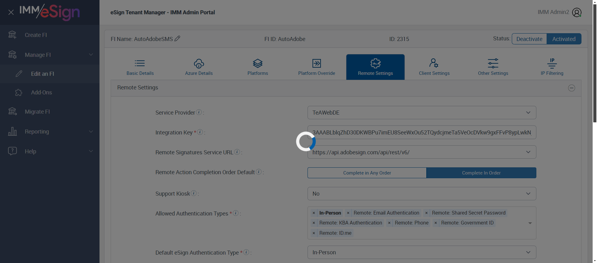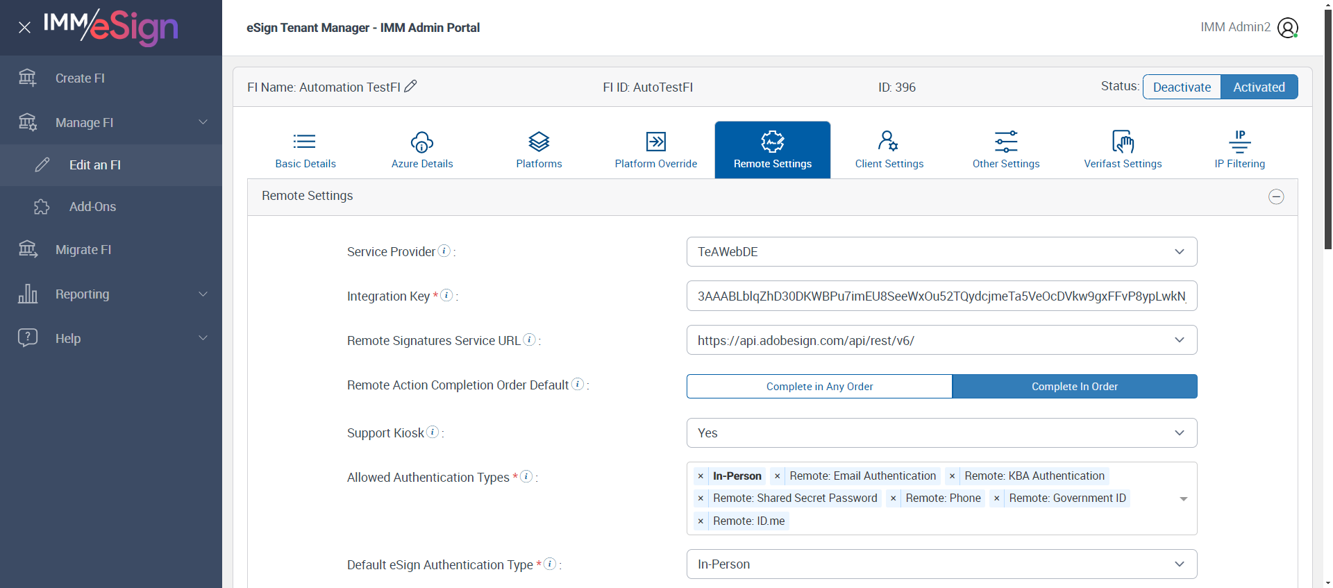 | {NewGroup=, Tenant_URL=https://esignnonprod.immesign.com/qa/tenantmanager/#, Tenant_User=immadmin2@immesignqa.onmicrosoft.com, Group=, EmailID=, FI_Name=Autotestfi, Description=Verify Remote ID Me authentication in eSignature page based on User permission, Login_User_ID=cuadmin@immtestcu.onmicrosoft.com, Address=, SearchUser=, Add_Dictionary=, GRP_PermissionRadio=, Filepath=src/main/resources/testdata/files/documentRTS/Disclosure.pdf,src/main/resources/testdata/files/documentRTS/Loan Application Form.pdf,src/main/resources/testdata/files/documentRTS/Students Loan.pdf,src/main/resources/testdata/files/DriversLicense.jpg, Effect_Summary=User Can Send Sessions to Remote,Email, Government ID, ID.me, KBA, Password, Phone;User Can Send Sessions for eDelivery,Email, Government ID, ID.me, KBA, Password, Phone, Name=, GRP_PermissionChkBox=, NewUser_ID=, TestID=verifyRemoteIDMeUserPermissions, Dictionary_Code=TeSign,XPLN, IndexSource=, PartiesToView=, Access_Password=, NewName=, Confirm_Reset_Password=, User_ID=, Notes=, Reset_Password=, Path=src/main/resources/testdata/files/DocumentExport.Zip, Copy_User_ID=, Tenant_Password=iMM@2022, NewDescription=, Enter_eSignClient=, ZipCode=, FI_ID=Autotestfi, City=, Delete_Dictionary=, AttachmentTypeOption=, Confirm_Password=, Tab=Remote Settings, NewEmailID=, State=, Login_Password=iMM@2022, UserURL=, eSignClient=, Domain=, UserType=IMM Admin2, Copy_Tab=} |