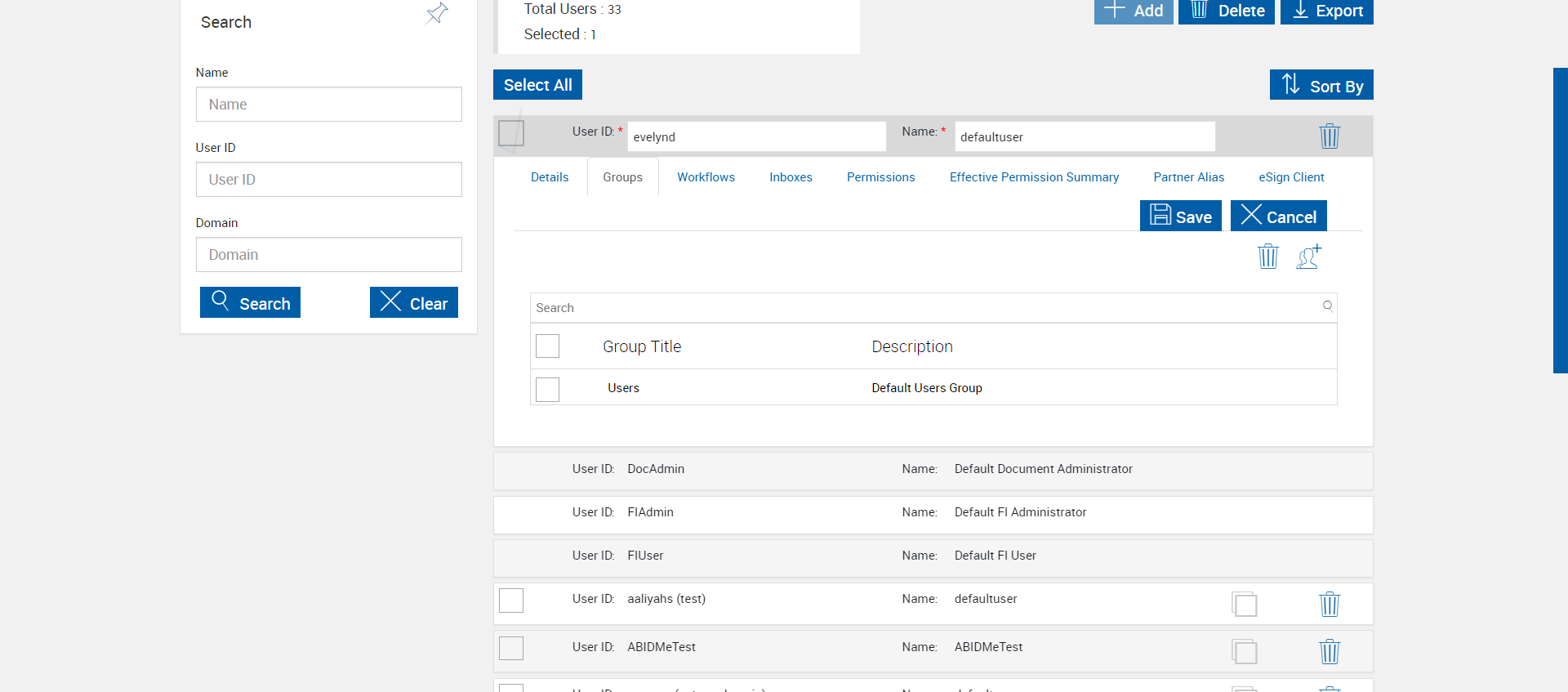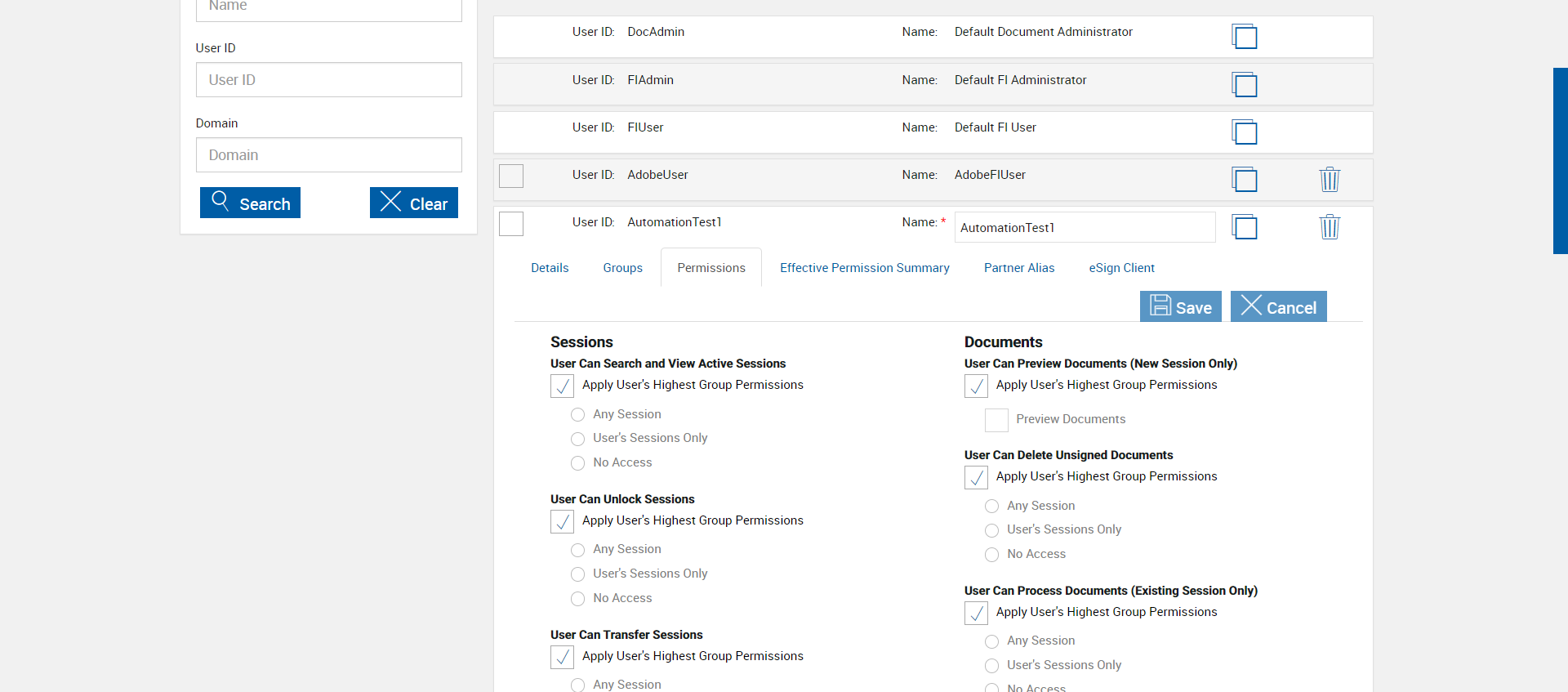 | {NewGroup=, Tenant_URL=, Tenant_User=, Group=Users, EmailID=test.docadmin@immonline.com, FI_Name=, Description=verify Copy FI User with Only Groups Tab , Login_User_ID=, Address=, SearchUser=, Add_Dictionary=, GRP_PermissionRadio=, Filepath=, Effect_Summary=User Can Search and View Active Sessions,Their Own Sessions Only;User Can Unlock Sessions,Their Own Sessions Only;User Can Transfer Sessions,Their Own Sessions Only;User Can Delete Unsigned Sessions,Denied;User Can Delete Signed Sessions,Denied;User Can Archive Sessions,Their Own Sessions Only;User Can Search and View Completed Sessions,Their Own Sessions Only;User Can Add Documents/Attachments to Sessions,Their Own Sessions Only;User Can Access In Person Signing,Draw, Signature Pad, Type;User Can Send Sessions to Remote,Email, Government ID, KBA, Password, Phone;User Can Send Sessions for eDelivery,Email, Government ID, KBA, Password, Phone;User Can Change the Remote Action Completion Order,Denied;User Can Change the Remote Completion Deadline Days,Denied;User Can Preview Documents (New Session Only),Preview Documents;User Can Delete Unsigned Documents,Their Own Sessions Only;User Can Process Documents (Existing Session Only),Their Own Sessions Only;User Can Edit Indexes/Imaging Indexes,Their Own Sessions Only;User Can Reindex Documents,Denied;User Can Modify Document Visibility Action,Denied;User Can Use Designer Application,Their Own Sessions Only;Users Can Review Assignments in Designer,Denied;User Can Define Unknown Documents,Denied;User Can Access Reports,Expiring Sessions, Remote Signature Status, Session Status;User Can Process Starter Checks,Starter Checks;User Can Process Loan Coupons,Loan Coupons;User Can Run Starter Checks Report,Their Own Sessions Only;User Can Run Loan Coupons Report,Their Own Sessions Only;User Can Create and Modify Group/User Permissions,Denied;User Can Create and Manage Templates,Create and Manage Templates, Name=Default FI User, GRP_PermissionChkBox=, NewUser_ID=, TestID=verifyCopyUSerWithGroupTab, Dictionary_Code=, IndexSource=, PartiesToView=, Access_Password=P@ssword1, NewName=Emily_Bob;Tom Peter, Confirm_Reset_Password=Password1, User_ID=FIUser, Notes=, Reset_Password=Password1, Path=, Copy_User_ID=Emily_CP;Tom_GP, Tenant_Password=, NewDescription=, Enter_eSignClient=, ZipCode=, FI_ID=, City=, Delete_Dictionary=, AttachmentTypeOption=, Confirm_Password=P@ssword1, Tab=, NewEmailID=, State=, Login_Password=, UserURL=, eSignClient=%InstallPath%\Output;;;20;Internet Explorer;T;5, Domain=test, UserType=Default, Copy_Tab=} |