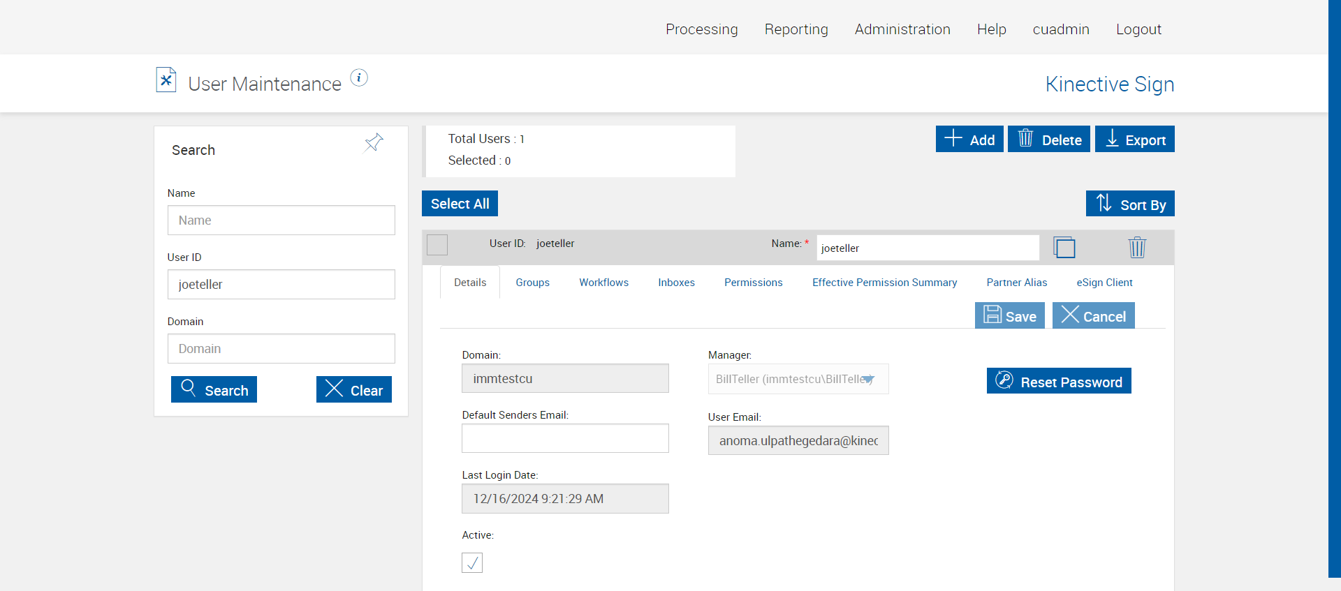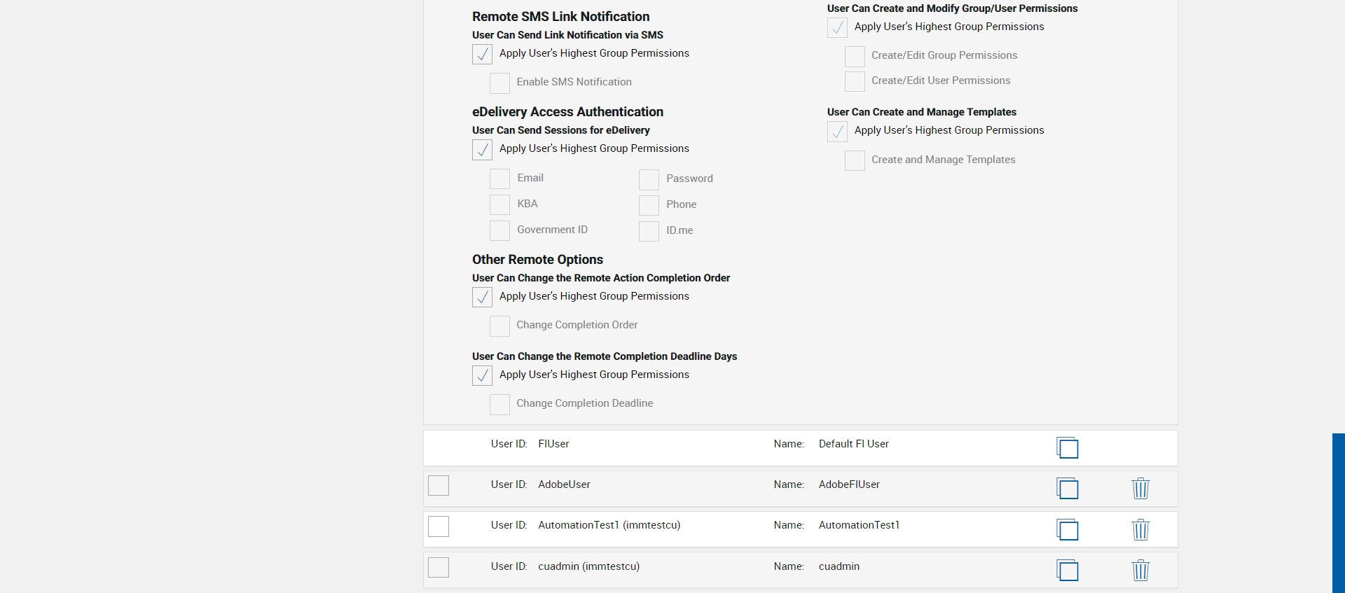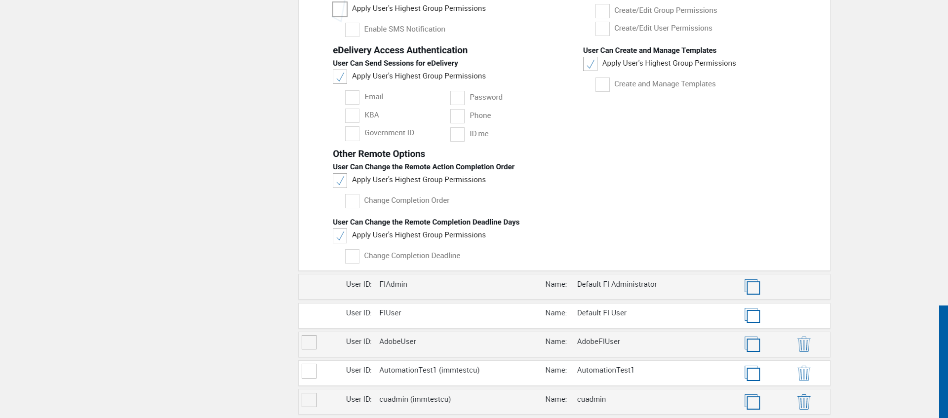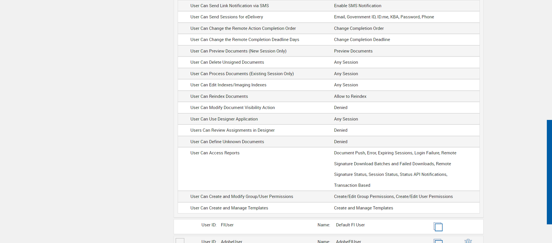 | {NewGroup=, Tenant_URL=, Tenant_User=, Group=Users, EmailID=test.docadmin@immonline.com, FI_Name=, Description=verify Copy FI User with eSign Client, Login_User_ID=, Address=, SearchUser=, Add_Dictionary=, GRP_PermissionRadio=, Filepath=, Effect_Summary=User Can Search and View Active Sessions,Their Own Sessions Only;User Can Unlock Sessions,Their Own Sessions Only;User Can Transfer Sessions,Their Own Sessions Only;User Can Delete Unsigned Sessions,Denied;User Can Delete Signed Sessions,Denied;User Can Archive Sessions,Their Own Sessions Only;User Can Search and View Completed Sessions,Their Own Sessions Only;User Can Add Documents/Attachments to Sessions,Their Own Sessions Only;User Can Access In Person Signing,Draw, Signature Pad, Type;User Can Send Sessions to Remote,Email, Government ID, KBA, Password, Phone;User Can Send Sessions for eDelivery,Email, Government ID, KBA, Password, Phone;User Can Change the Remote Action Completion Order,Denied;User Can Change the Remote Completion Deadline Days,Denied;User Can Preview Documents (New Session Only),Preview Documents;User Can Delete Unsigned Documents,Their Own Sessions Only;User Can Process Documents (Existing Session Only),Their Own Sessions Only;User Can Edit Indexes/Imaging Indexes,Their Own Sessions Only;User Can Reindex Documents,Denied;User Can Modify Document Visibility Action,Denied;User Can Use Designer Application,Their Own Sessions Only;Users Can Review Assignments in Designer,Denied;User Can Define Unknown Documents,Denied;User Can Access Reports,Expiring Sessions, Remote Signature Status, Session Status;User Can Process Starter Checks,Starter Checks;User Can Process Loan Coupons,Loan Coupons;User Can Run Starter Checks Report,Their Own Sessions Only;User Can Run Loan Coupons Report,Their Own Sessions Only, Name=Default FI User, GRP_PermissionChkBox=, NewUser_ID=, TestID=verifyCopyUSerWitheSignClientTab, Dictionary_Code=, IndexSource=, PartiesToView=, Access_Password=P@ssword1, NewName=Emily_Bob;Tom Peter, Confirm_Reset_Password=Password1, User_ID=FIUser, Notes=, Reset_Password=Password1, Path=, Copy_User_ID=Emily_CP;Tom_GP, Tenant_Password=, NewDescription=, Enter_eSignClient=, ZipCode=, FI_ID=, City=, Delete_Dictionary=, AttachmentTypeOption=, Confirm_Password=P@ssword1, Tab=, NewEmailID=, State=, Login_Password=, UserURL=, eSignClient=%InstallPath%\Output;;;20;Internet Explorer;T;5, Domain=test, UserType=Default, Copy_Tab=} |