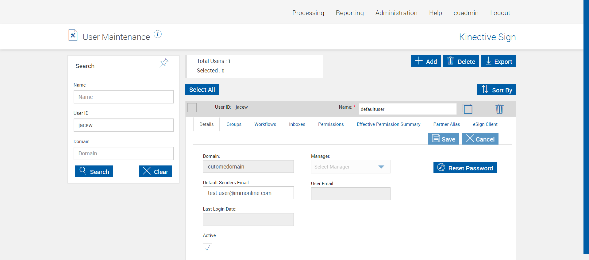 | {NewGroup=, Tenant_URL=, Tenant_User=, Group=Users, EmailID=test.docadmin@immonline.com, FI_Name=, Description=Verify Copy User with No groups associated to it, Login_User_ID=, Address=, SearchUser=, Add_Dictionary=, GRP_PermissionRadio=, Filepath=, Effect_Summary=User Can Search and View Active Sessions,Their Own Sessions Only;User Can Unlock Sessions,Their Own Sessions Only;User Can Transfer Sessions,Their Own Sessions Only;User Can Delete Unsigned Sessions,Denied;User Can Delete Signed Sessions,Denied;User Can Archive Sessions,Their Own Sessions Only;User Can Search and View Completed Sessions,Their Own Sessions Only;User Can Add Documents/Attachments to Sessions,Their Own Sessions Only;User Can Access In Person Signing,Draw, Signature Pad, Type;User Can Send Sessions to Remote,Email, Government ID, KBA, Password, Phone;User Can Send Sessions for eDelivery,Email, Government ID, KBA, Password, Phone;User Can Change the Remote Action Completion Order,Denied;User Can Change the Remote Completion Deadline Days,Denied;User Can Preview Documents (New Session Only),Preview Documents;User Can Delete Unsigned Documents,Their Own Sessions Only;User Can Process Documents (Existing Session Only),Their Own Sessions Only;User Can Edit Indexes/Imaging Indexes,Their Own Sessions Only;User Can Reindex Documents,Denied;User Can Modify Document Visibility Action,Denied;User Can Use Designer Application,Their Own Sessions Only;Users Can Review Assignments in Designer,Denied;User Can Define Unknown Documents,Denied;User Can Access Reports,Expiring Sessions, Remote Signature Status, Session Status;User Can Process Starter Checks,Starter Checks;User Can Process Loan Coupons,Loan Coupons;User Can Run Starter Checks Report,Their Own Sessions Only;User Can Run Loan Coupons Report,Their Own Sessions Only;User Can Create and Modify Group/User Permissions,Denied;User Can Create and Manage Templates,Create and Manage Templates, Name=Jerry, GRP_PermissionChkBox=, NewUser_ID=, TestID=verifyCopyUSerWithNoGroups, Dictionary_Code=, IndexSource=, PartiesToView=, Access_Password=P@ssword1, NewName=Emily_Bob;Tom Peter, Confirm_Reset_Password=Password1, User_ID=Jerry, Notes=, Reset_Password=Password1, Path=, Copy_User_ID=Emily_CP;Tom_GP, Tenant_Password=, NewDescription=, Enter_eSignClient=, ZipCode=, FI_ID=, City=, Delete_Dictionary=, AttachmentTypeOption=, Confirm_Password=P@ssword1, Tab=, NewEmailID=, State=, Login_Password=, UserURL=, eSignClient=%InstallPath%\Output;;;20;Internet Explorer;T;5, Domain=test, UserType=Custom, Copy_Tab=Permissions;Group;eSignClient} |