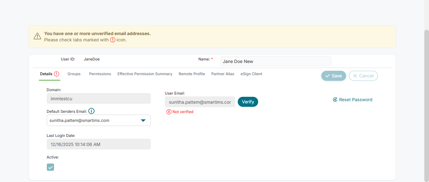 | 03:44:11 pm | Expected: Exclamation mark is displayed in Details tab when user email is not blank and not verified for Fully Integrated FI Actual(Passed): ✅Successfully verified Exclamation mark is displayed in Details tab when user email is not blank and not verified for Fully Integrated FI [ScreenShot] |
