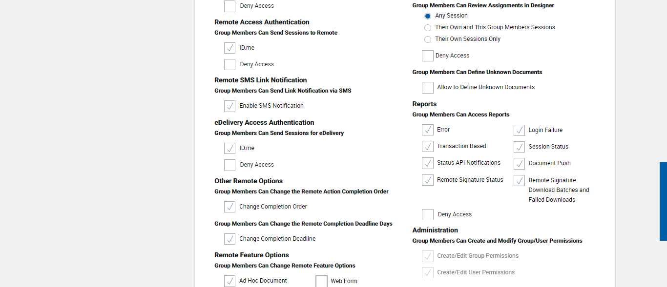(DocAdmin) verify Group Permissions for Remote Features