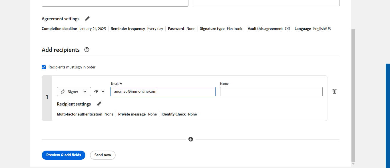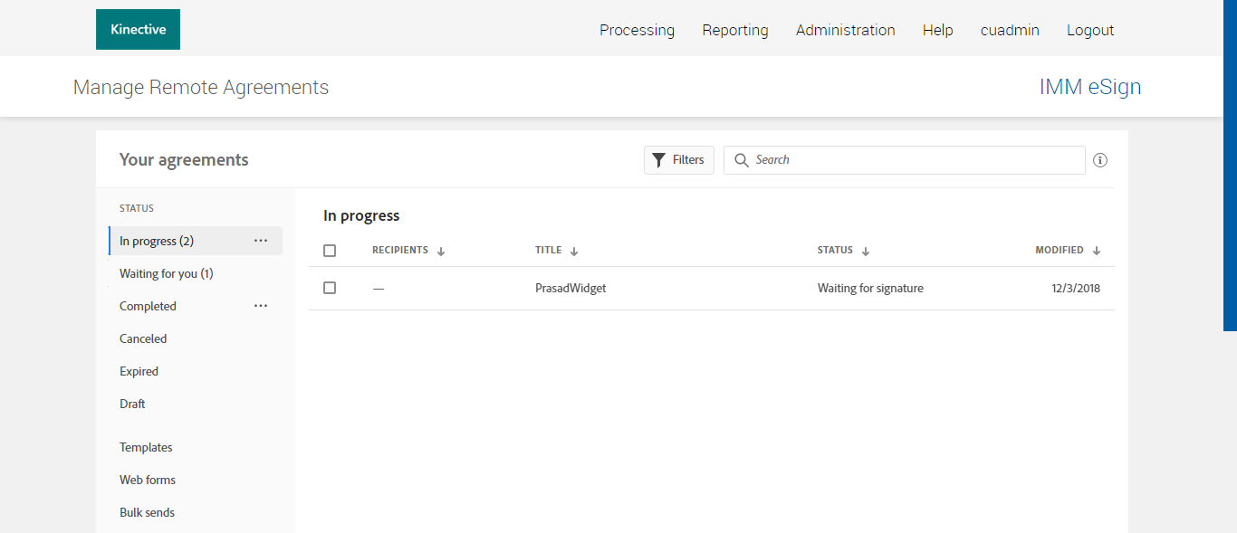 Successfylly diaplayed default Agreement name [ScreenShot]