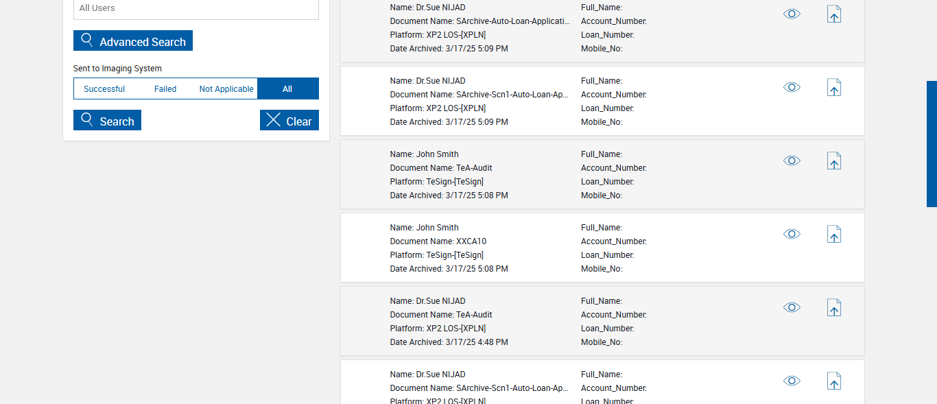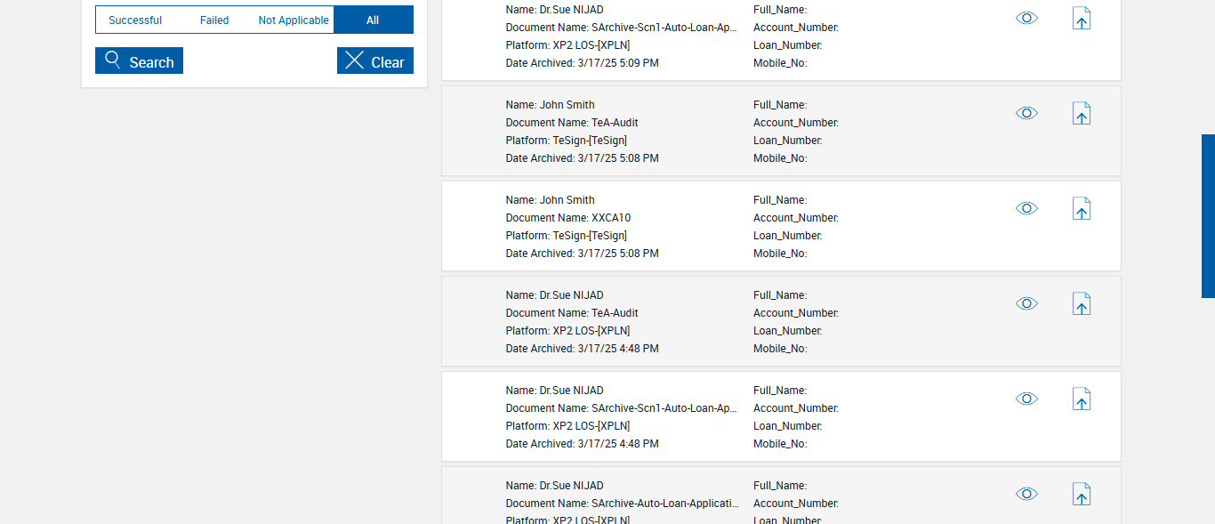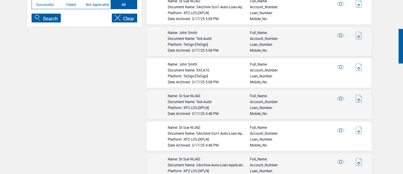 verify Archive Status And Manage Completed XML Session Documents On The Search Completed Page