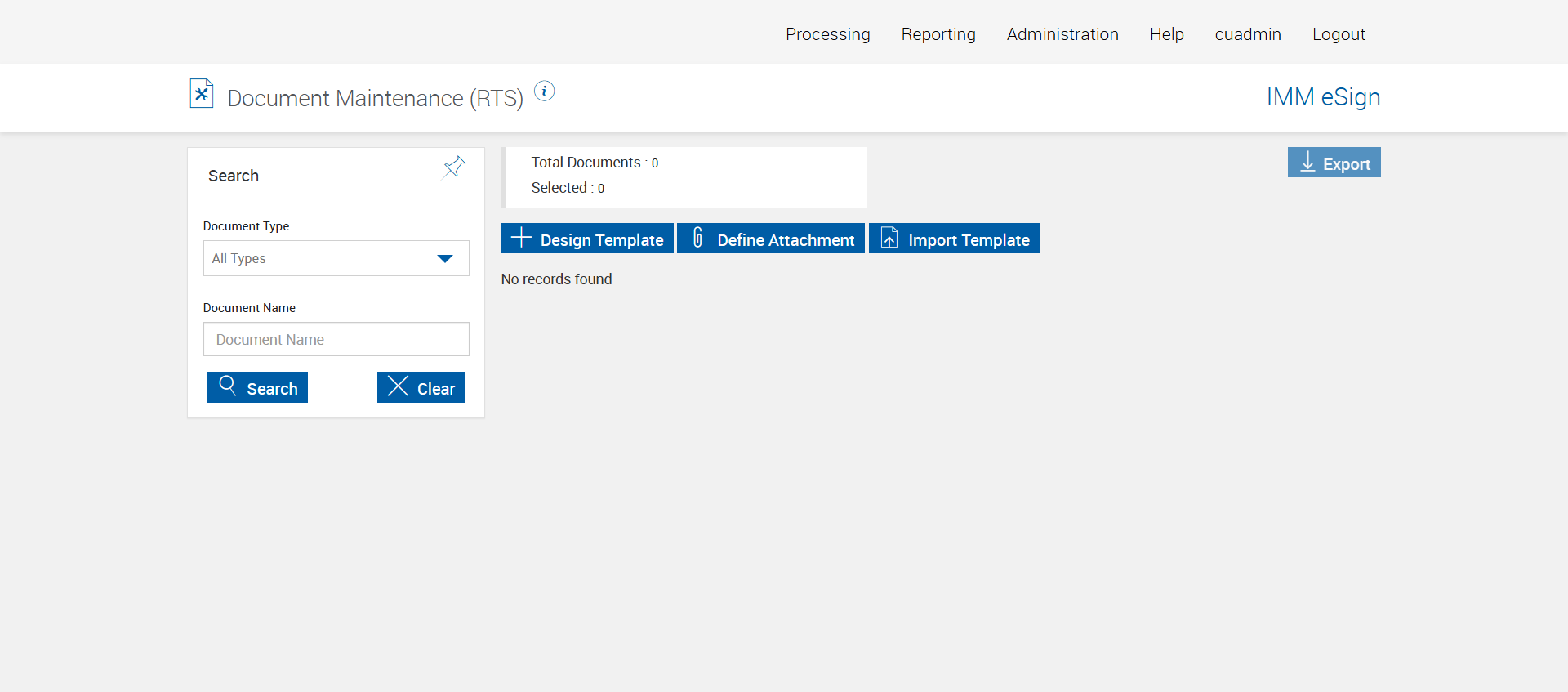 verifyExportAndDeletingTemplatesOnTheDocumentMaintenanceRTSPage
