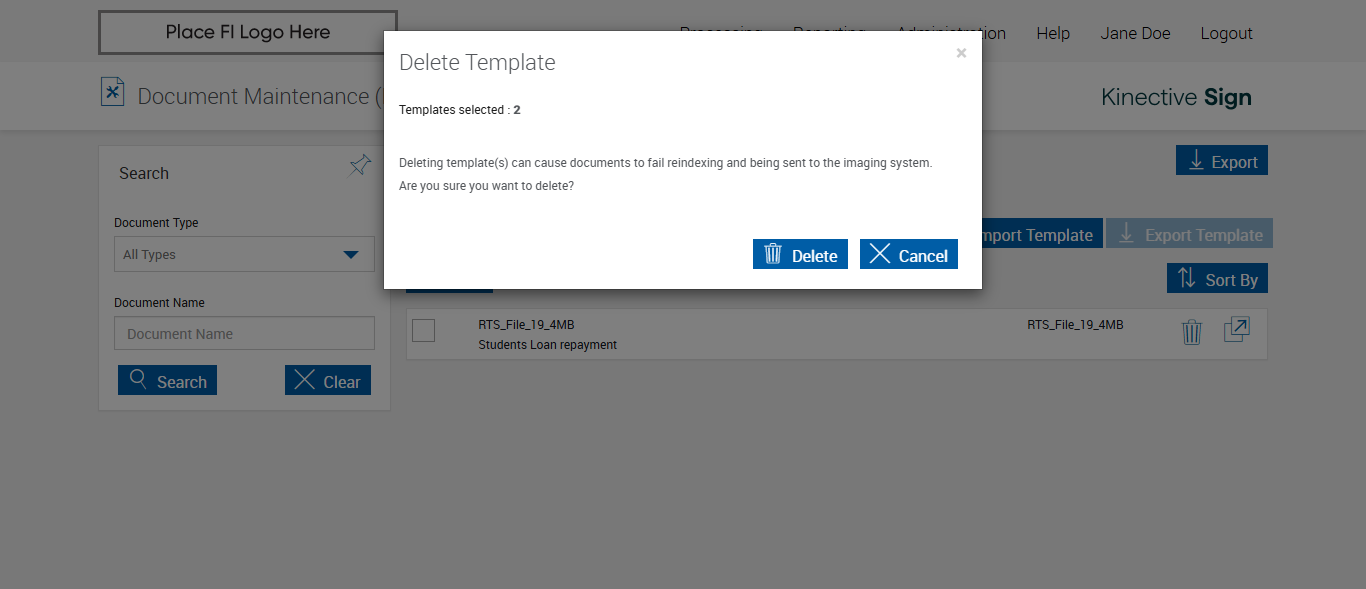 verifyExportAndDeletingTemplatesOnTheDocumentMaintenanceRTSPage