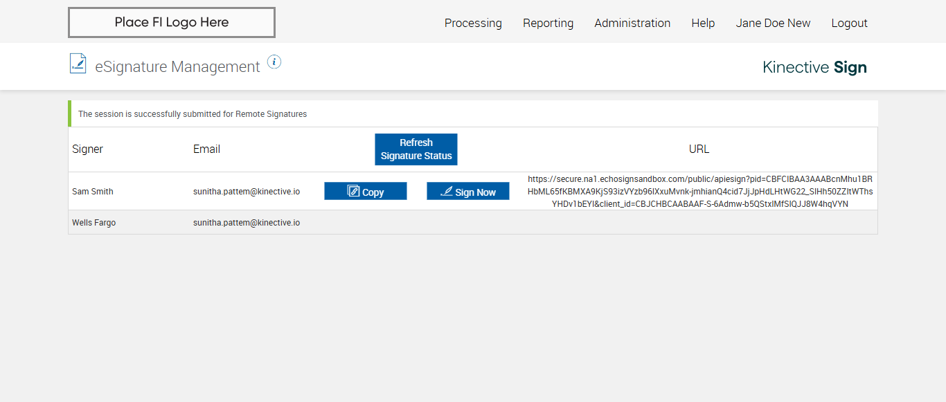 Expected: The session is successfully submitted for Remote Signatures message should be displayed