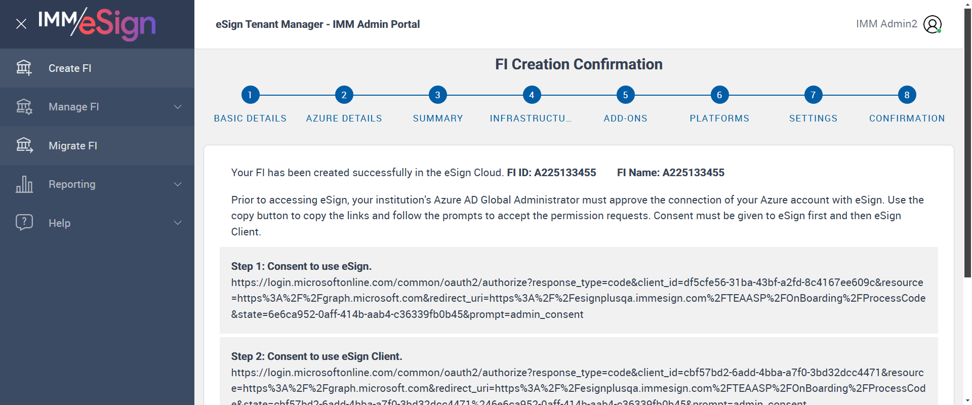 | com.imm.testscripts.FIManagement.FIManagement | verifyMultiDomainTMCreateFIAzureDetailsandEsignUsersLogin: Create new FI, While create FI verify Azure details tab UI for multi domain and add multiple Additional domain. After that verify user can login with different additional domains and check user will add in correct group also check correct domain name display. | 1739867561557 | 224636 |