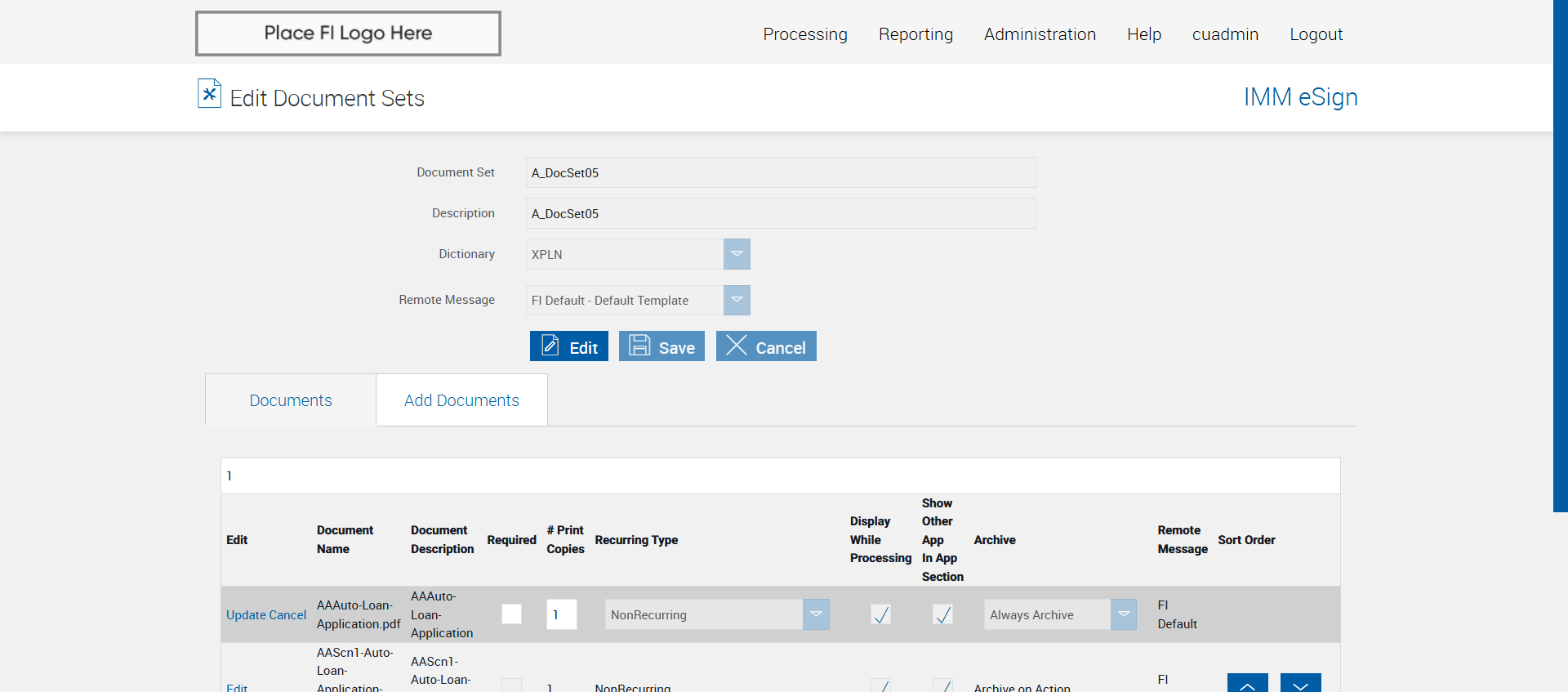 Default Archive value is set to Archive on Action on Edit Document Sets page [ScreenShot]