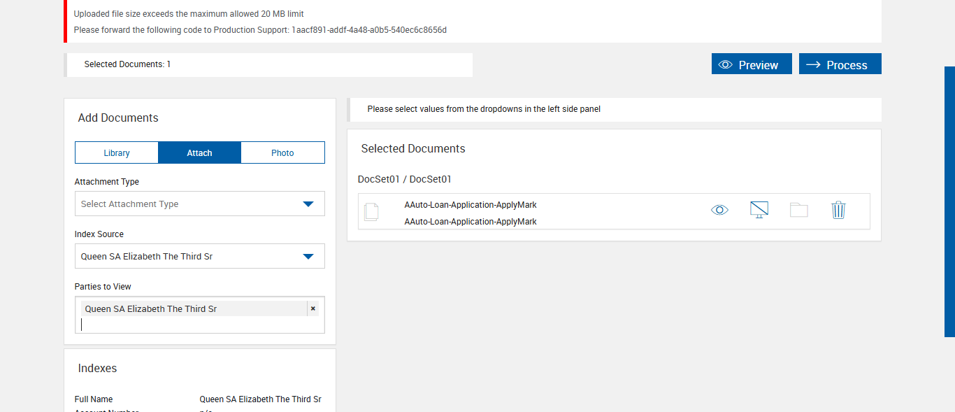 ({Tenant_URL=, InboxName=, Platform=XP2 LOS [ XPLN ], Address=, Username2=, IsSignRequired=, tooltip=, User_Password=iMM@2022, Name=, PartiesToView= Queen SA Elizabeth The Third Sr, GROSSPPP=, IsAddedTemplateRequired=, Zipcode=, ReceivedFromNames=, EditCompletionDays=, TemplateTitle=, plusfi=FALSE, DummyUser=, EditMessageSubject=, DocumentName=XML_File_18_9MB, AttachmentTemplate=, FirstTransfer=, Dropdownvalues=, Remote_Signing_Type=, KeepUnlock=, Workflow=AdHoc Simple Workflow, Birthdate=, AttachmentTypeOption=XML_Attachment, SecondTransferUserID=, NumOfAttachments=, CompletionOrder=, ReceivedFrom=, Driving_license=, DocumentSet=, Test_type=, UserType=Admin, Tenant_User=, Applytype=, Group=, Description=verify Upload Max File Size Limit Add Attachment to XML Session, fi=adobeuser, User=, MessageSubject=, Message=Your documents are available for viewing, signing and printing., NoOftemplates=, FirstTransferUserID=, Phone_Number=+91 9700164911, SearchUser=, Step Name=, Filepath=src/main/resources/testdata/files/XMLMaxFileSize/XML_File_20_4MB.pdf,src/main/resources/testdata/files/XMLMaxFile/XML_File_18_9MB.pdf, Owners=, TestID=verifyUploadMaxFileSizeLimitInAddAttachmentToXMLSession, FItype=Unified, IndexSource= Queen SA Elizabeth The Third Sr, WorkfowName=, Sessionurl=https://esignplusqa.immesign.com/TEAASP/hostdispatch.aspx?hostid=xp&hsfiid=adobeuser&xmldata=D:\Automation_DataFiles\PrimaryAdobeeSign.xml, Inbox=, Password=, CC=, View/Skip_Group=, Tenant_Password=, User_Name=janedoe@immtestcu.onmicrosoft.com, UserName=, ViaAddDocs=, CompletionDays=, AddTemplateName=, Email_Id=sunitha.pattem@kinective.io, Comments=, IsOptionalSig=, FI_ID=AdobeUser, Sender_Email_Id=employee1@immonline.com, UserName2=, From=, UserName3=, SecondTransfer=, Email_Password=, UserName1=, Subject=SMS-Phone, SSN=, Response=, EditTemplateTitle=, MariageStatus=, DummyUserID=, ErrorMessage=Uploaded file size exceeds the maximum allowed 20 MB limit})