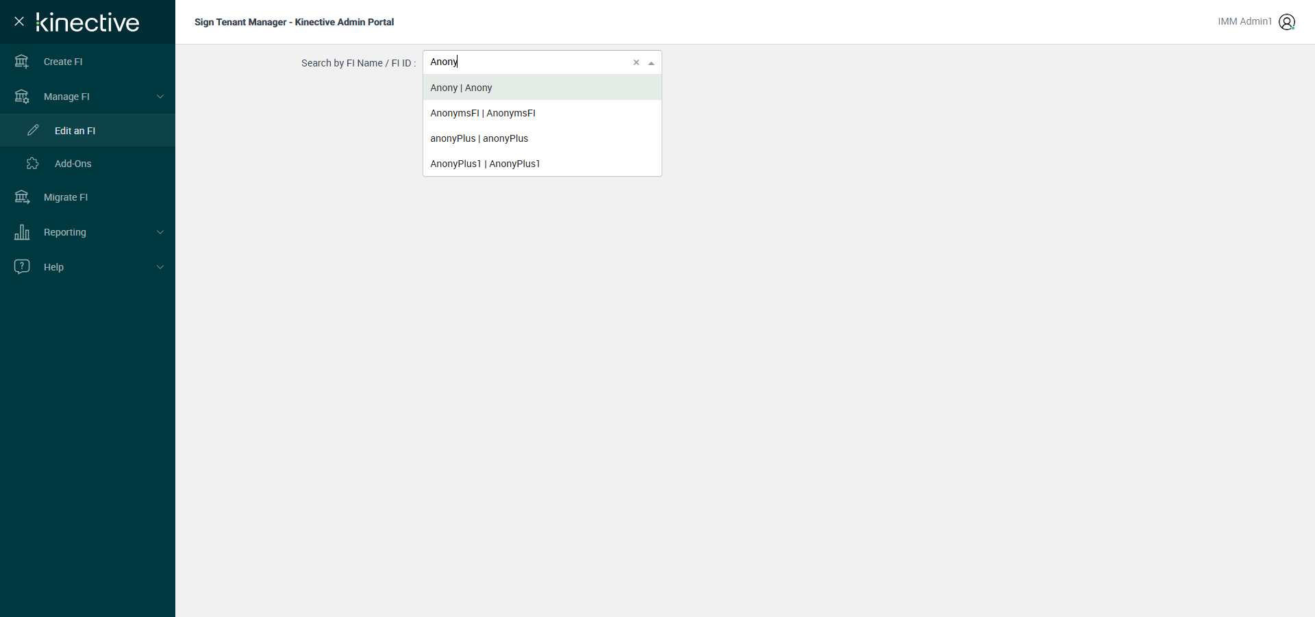Successfully navigated to 'Manage FI' page [ScreenShot]