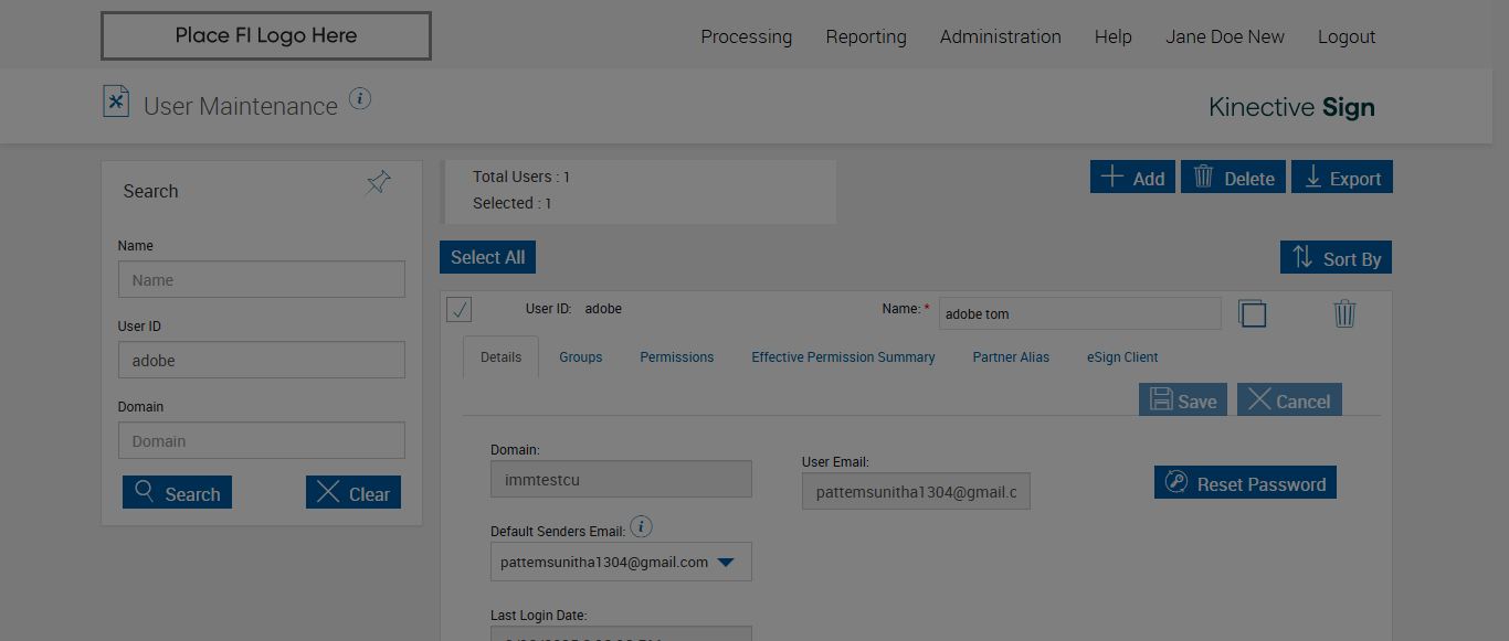 | com.imm.testscripts.FIManagement.FIManagement | verifyDefaultSenderFieldIncludeGroupSenderInUserMaintenanceAndUserAccountSettingsPage: verify Default Sender Field Include Group Sender in User Maintenance and User Account Settings Page - Sign FI Fully Integrated | 1758212756379 | 345702 |