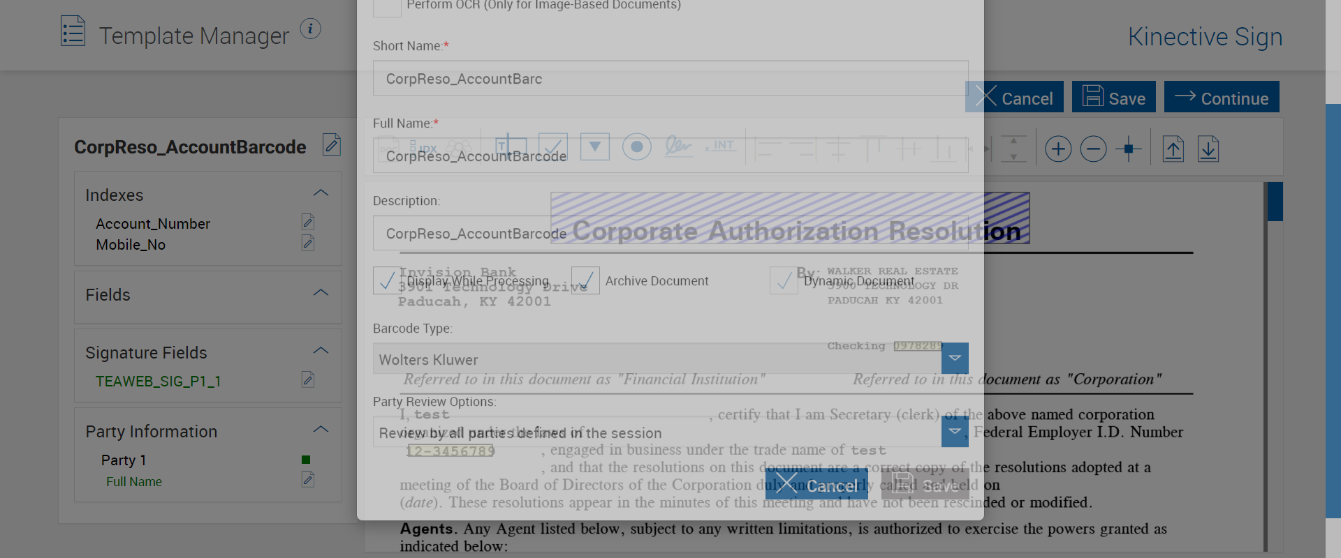 Expected: Barcode document converted as dynamic document and verify Barcode value auto filled after create session