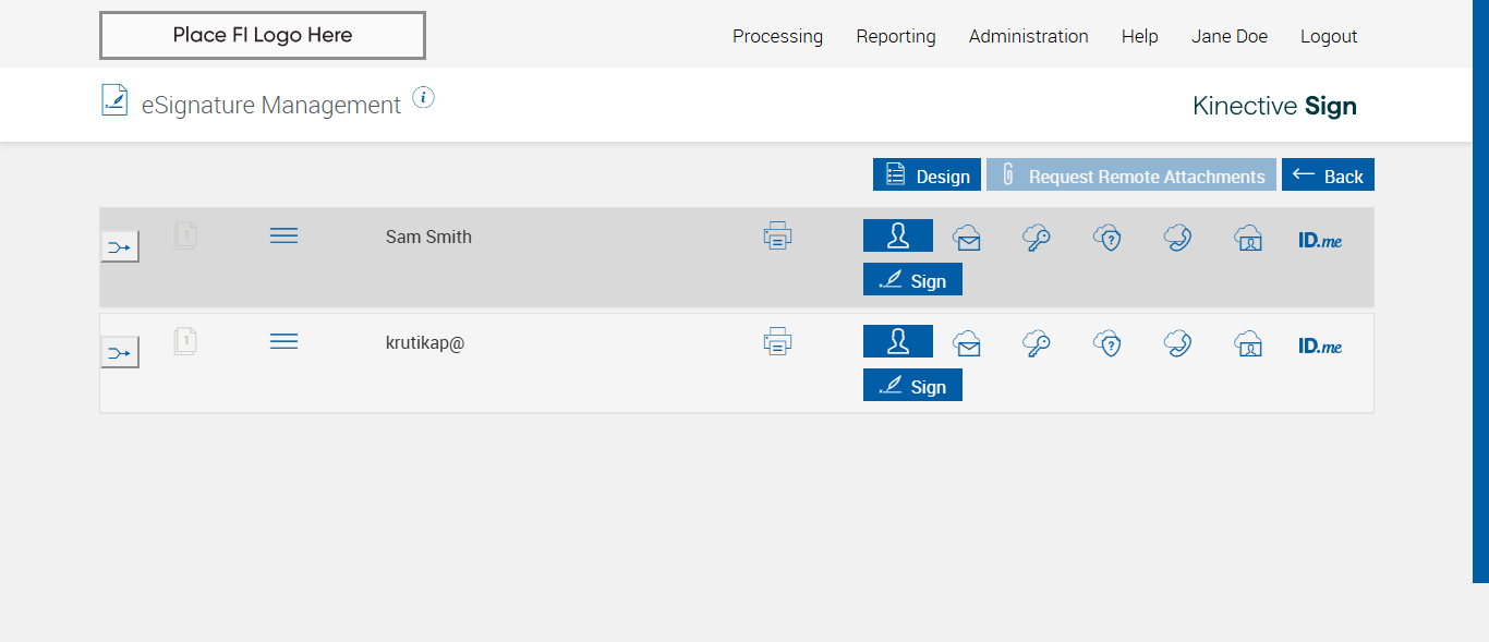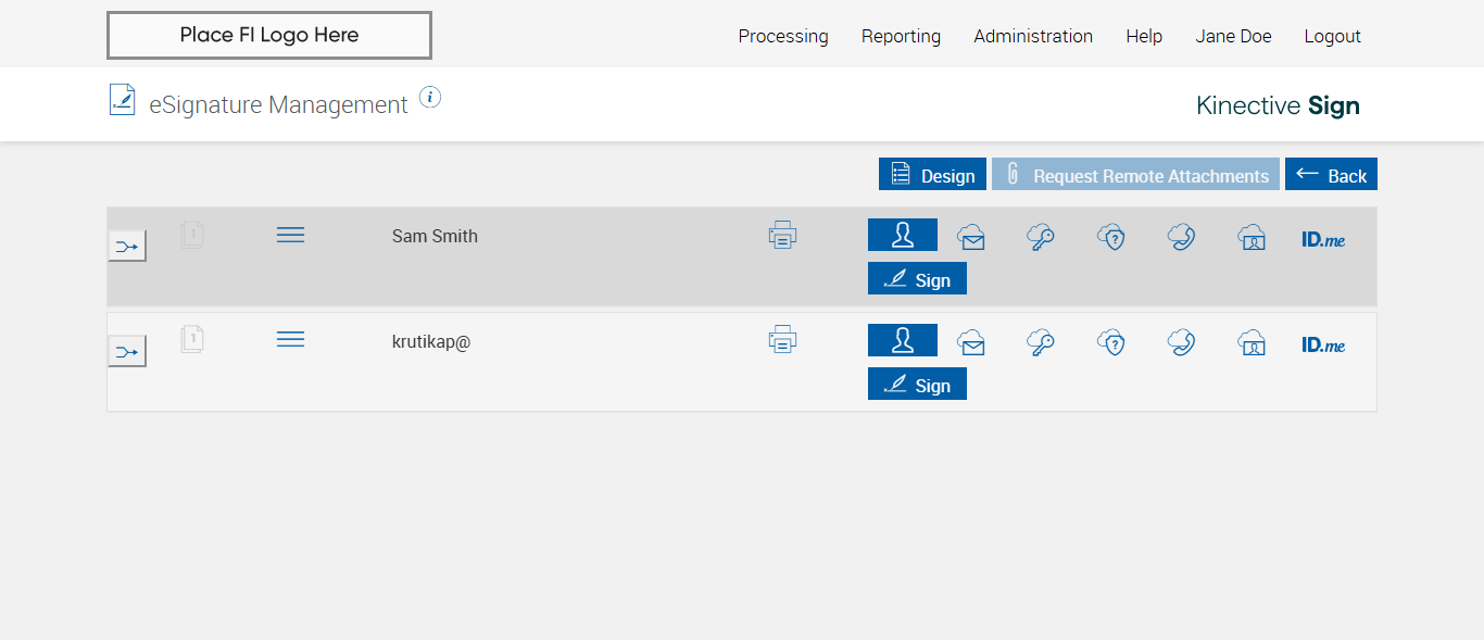Successfully navigated to the 'eSignature Management' page [ScreenShot]