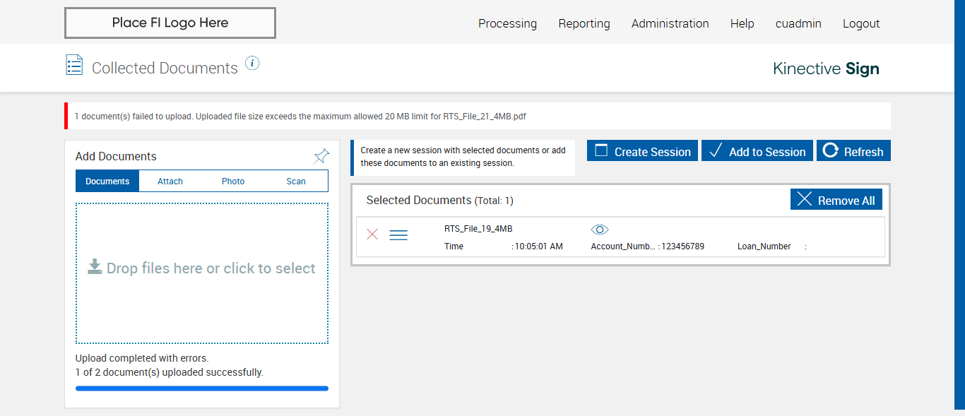 verify Upload Max File Size Limit In Collected Documents Page - AdobeOEM - Plus FI COMMENTS:Plus FI - Max File Size