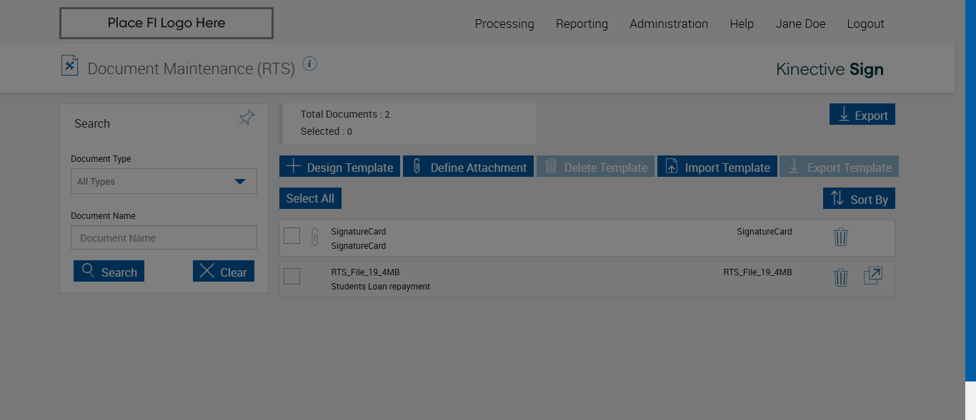 verifyExportAndDeletingTemplatesOnTheDocumentMaintenanceRTSPage