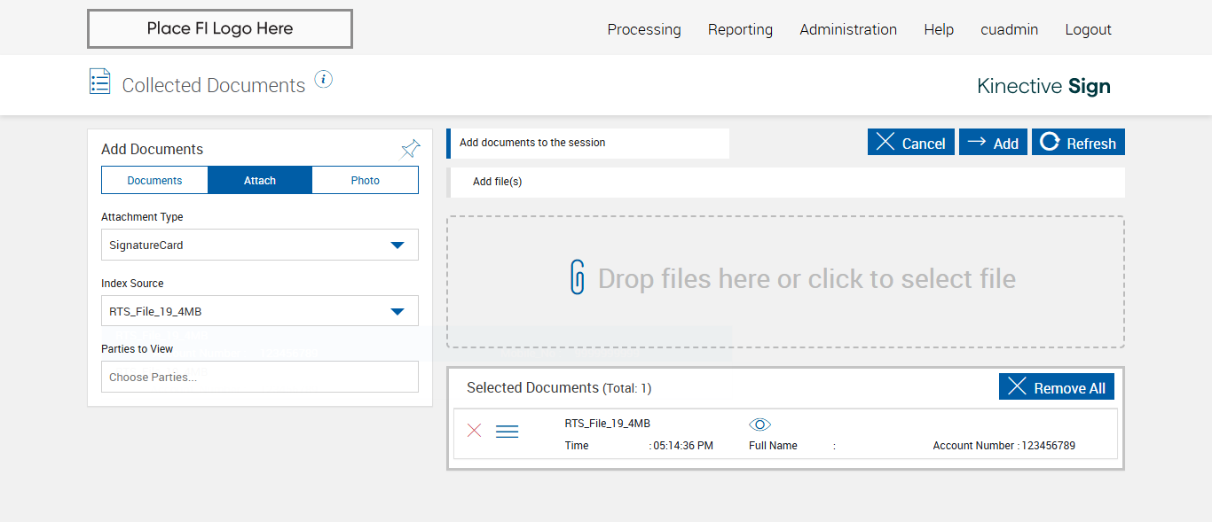 | 05:06:20 pm | Selected 'Attachment Type' : SignatureCard | |