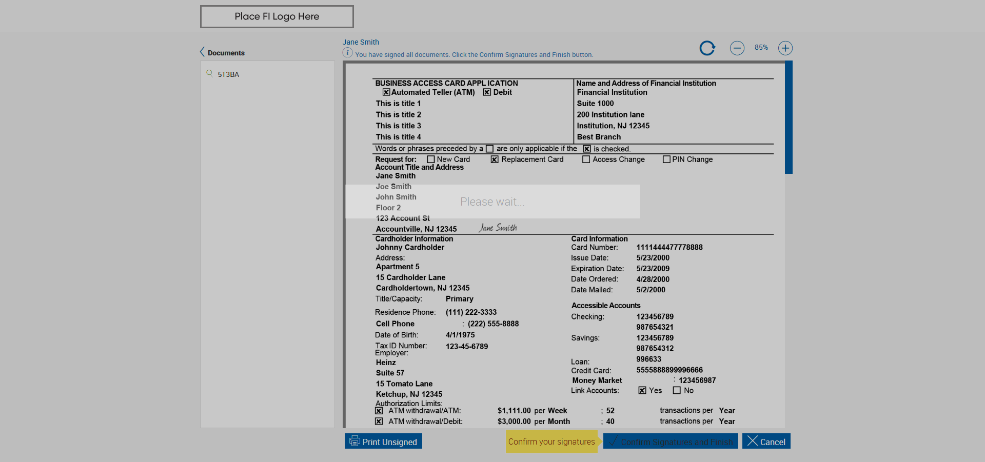 Clicked 'Confirm signature and finish' button!