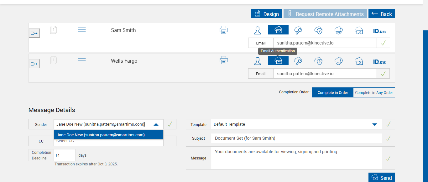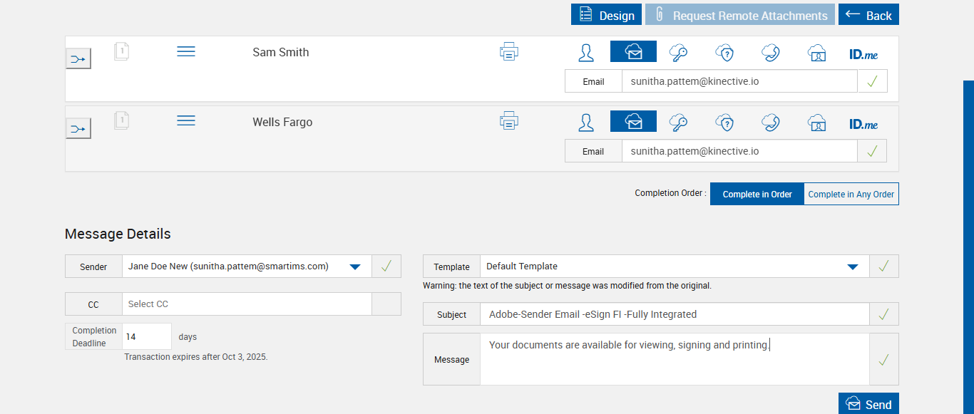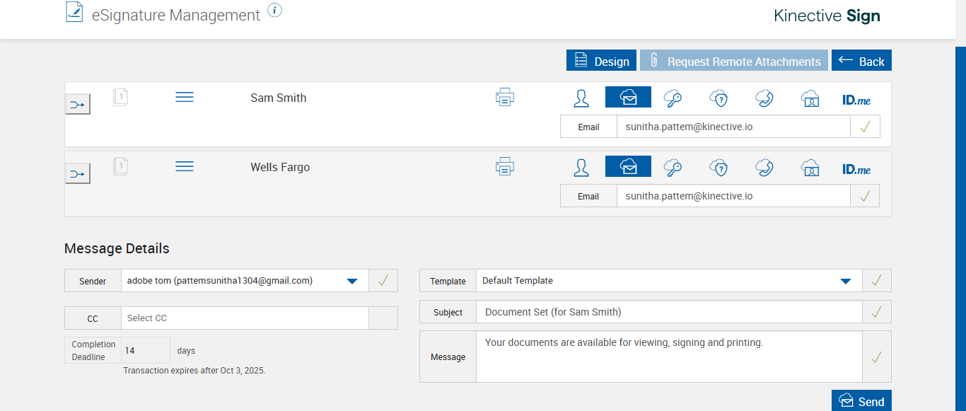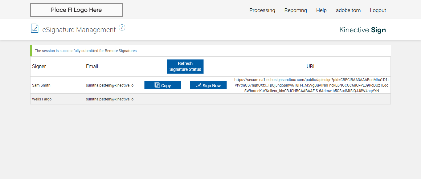 verify Sender Email In eSignature Management Page - eSign FI - Fully Integrated COMMENTS: