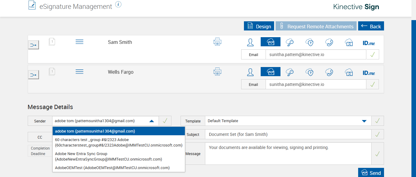 ({Tenant_URL=https://esignnonprod.immesign.com/qa/tenantmanager/, EditFullName=, Email=, Platform=, Sender_Emails=Jane Doe New (sunitha.pattem@smartims.com),adobe tom (pattemsunitha1304@gmail.com);60 characters test _group #&!2323 Adobe (60characterstest_group#&!2323Adobe@IMMTestCU.onmicrosoft.com);Adobe more than 60 characters test _group$#*&! 2323 Adobe more than 60 test(Adobemorethan60characterstest_group$#*&!2323Adobemorethan60test@IMMTestCU.onmicrosoft.com);Adobe New Entra Sync Group (AdobeNewEntraSyncGroup@IMMTestCU.onmicrosoft.com), ShortName=, PartyName=, IndexFieldsValue=, password=, PartiesToView=, ReceivedFromNames=, TextField=, plusfi=FALSE, ImagingSettings=, DocumentName=LOAN_APPLICATION, Dropdownvalues=, Workflow=, AttachmentTypeOption=, NumOfAttachments=, Folderpath=, NameDescription=, Export_Values=, UserType=Admin,User, Tenant_User=immadmin2@immesignqa.onmicrosoft.com, Group=60 characters test _group #&!2323 Adobe,Adobe more than 60 characters test _group$#*&! 2323 Adobe more than 60 test,Adobe New Entra Sync Group,AccountCreation, Description=verify Sender Email In eSignature Management Page - eSign FI - Fully Integrated, Message=Your documents are available for viewing, signing and printing., BarcodeDropdownValues=, FileName=, EditShortName=, Phone_Number=, Step Name=, Filepath=src/main/resources/testdata/files/documentRTS/OptionalSignature.zip,src/main/resources/testdata/files/documentRTS/OptionalSignature.zip,src/main/resources/testdata/files/documentRTS/STUDENTS_LOAN.pdf,src/main/resources/testdata/files/documentRTS/LOAN_APPLICATION.pdf, DocumentPermission=, TestID=verifySenderEmailIneSignatureManagementPage, FItype=Unified, Required=, IndexSource=, Document Names=, Inbox=, Password=iMM@2022, Path=, Tenant_Password=iMM@2022, UserName=, Comments=, Email_Id=sunitha.pattem@kinective.io, Index_Field_Name=, Sender_Email_Id=pattemsunitha1304@gmail.com, FI_ID=AdobeUser, Vendor=, From=, TemplatePermission=, Subject=Adobe-Sender Email -eSign FI -Fully Integrated, Date=, Response=, Type=, AttachmentPath=, Username=janedoe@immtestcu.onmicrosoft.com,adobe@immtestcu.onmicrosoft.com, FullName=STUDENTS_LOAN, EditNameDescription=, ErrorMessage=})
