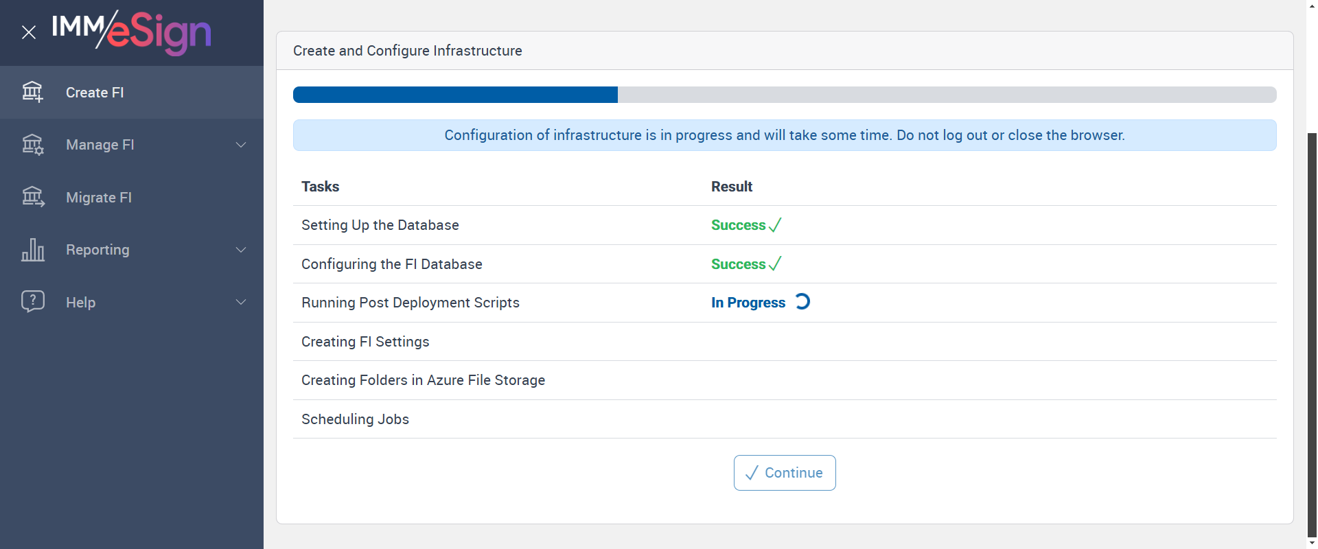 | 05:09:15 pm | Successfully Configured 'Configuring the FI Database' | |