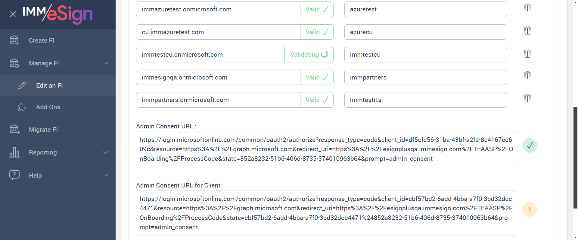 | 05:13:54 pm | Client URL is displayed https://login.microsoftonline.com/common/oauth2/authorize?response_type=code&client_id=cbf57bd2-6add-4bba-a7f0-3bd32dcc4471&resource=https%3A%2F%2Fgraph.microsoft.com&redirect_uri=https%3A%2F%2Fesignplusqa.immesign.com%2FTEAASP%2FOnBoarding%2FProcessCode&state=cbf57bd2-6add-4bba-a7f0-3bd32dcc4471%24852a8232-51b6-406d-8735-374010963b64&prompt=admin_consent [ScreenShot] | |