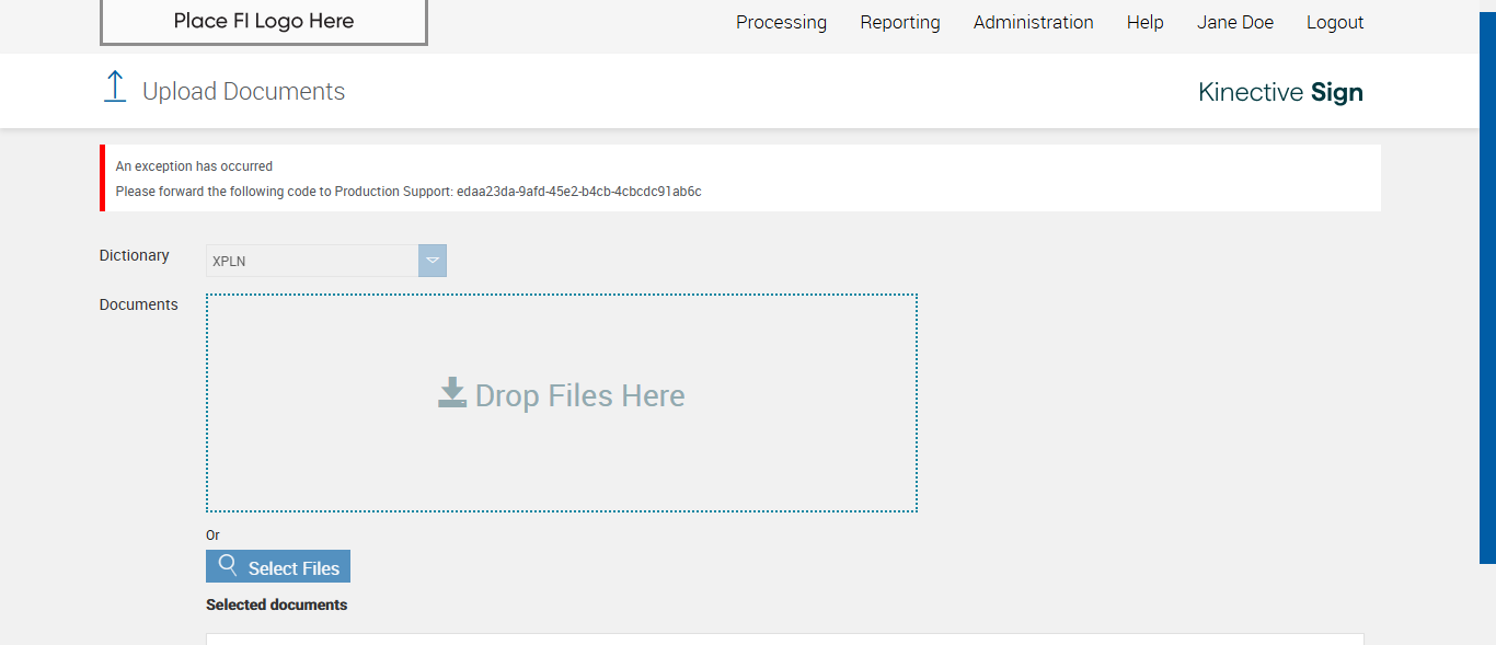 Expected: edaa23da-9afd-45e2-b4cb-4cbcdc91ab6c error code displayed