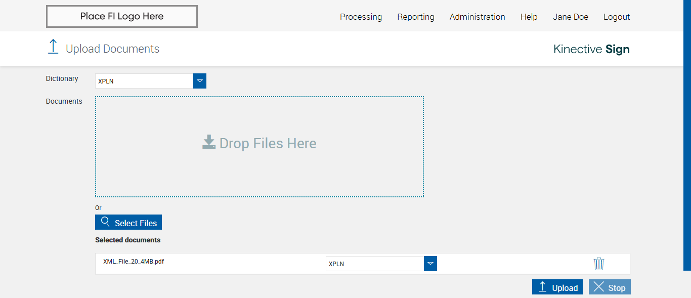 Expected: Check mark should appear for successully uploaded document