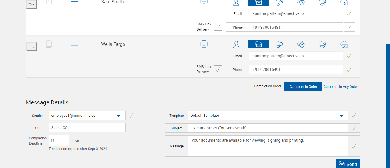 | 12:49:28 pm | Successfully verified SMS Link Notification option is available for Email signing [ScreenShot] | |
