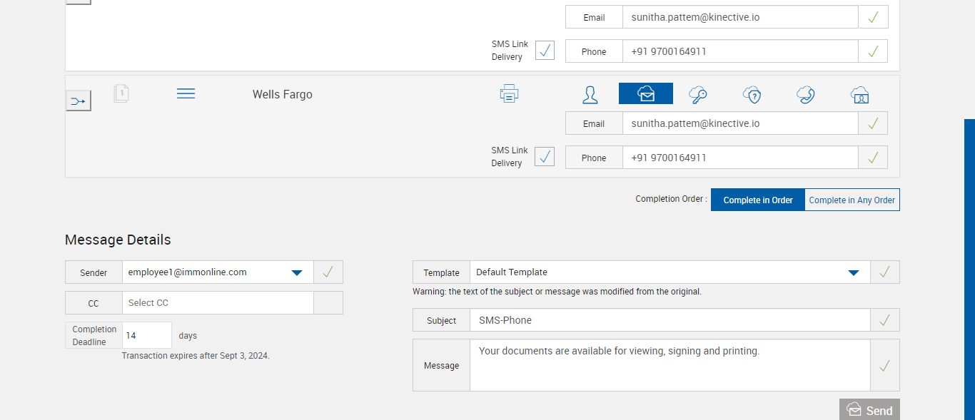 | 09:15:25 pm | Successfully verified SMS Link Notification option is available for Email signing [ScreenShot] | |