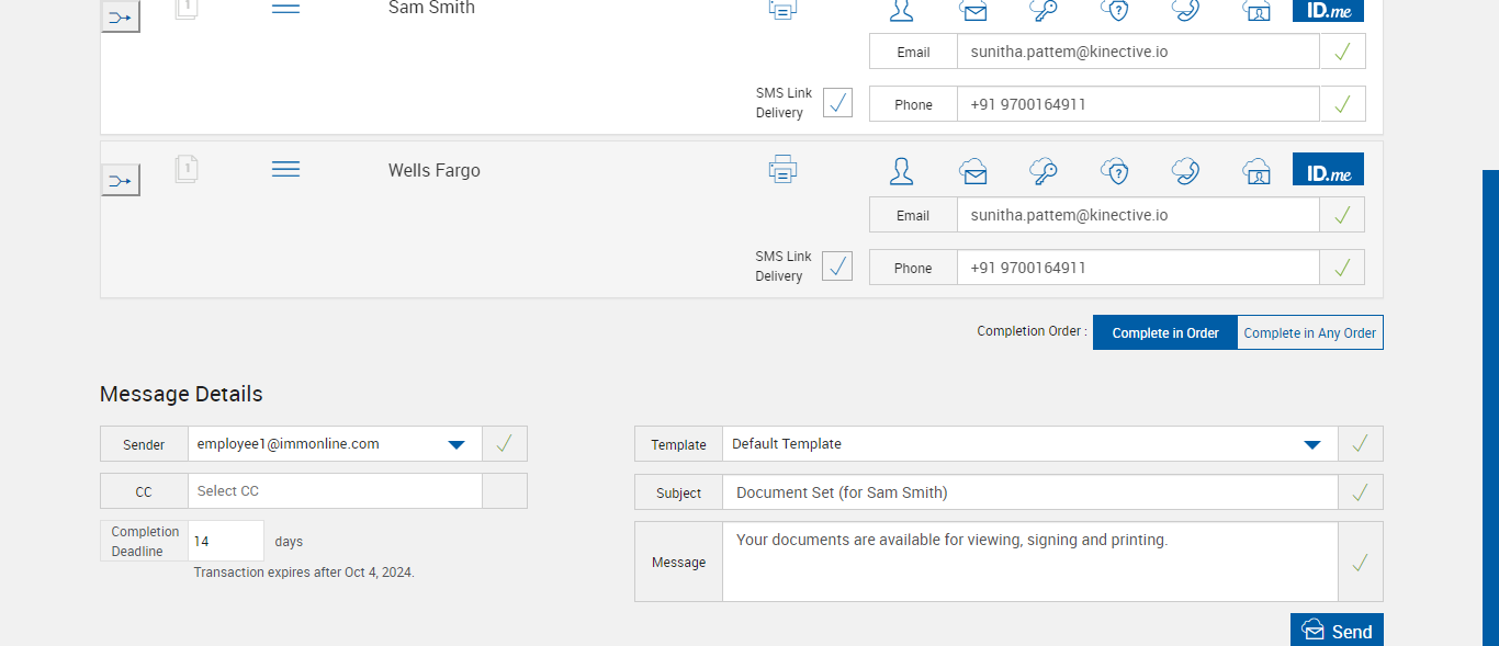 | 12:36:46 pm | Successfully verified SMS Link Notification option is available for ID.Me signing [ScreenShot] | |