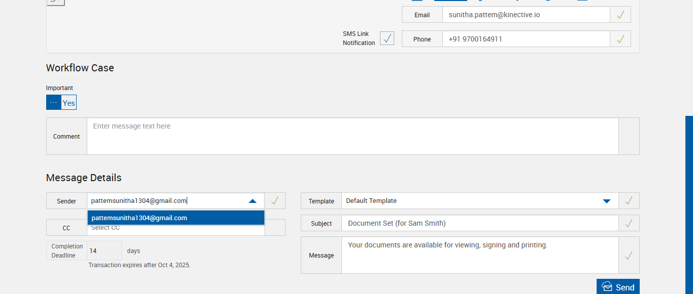 verify Sender Email In eSignature Management Page - Plus FI - Legacy COMMENTS:Plus FI - Legacy Sender Email
